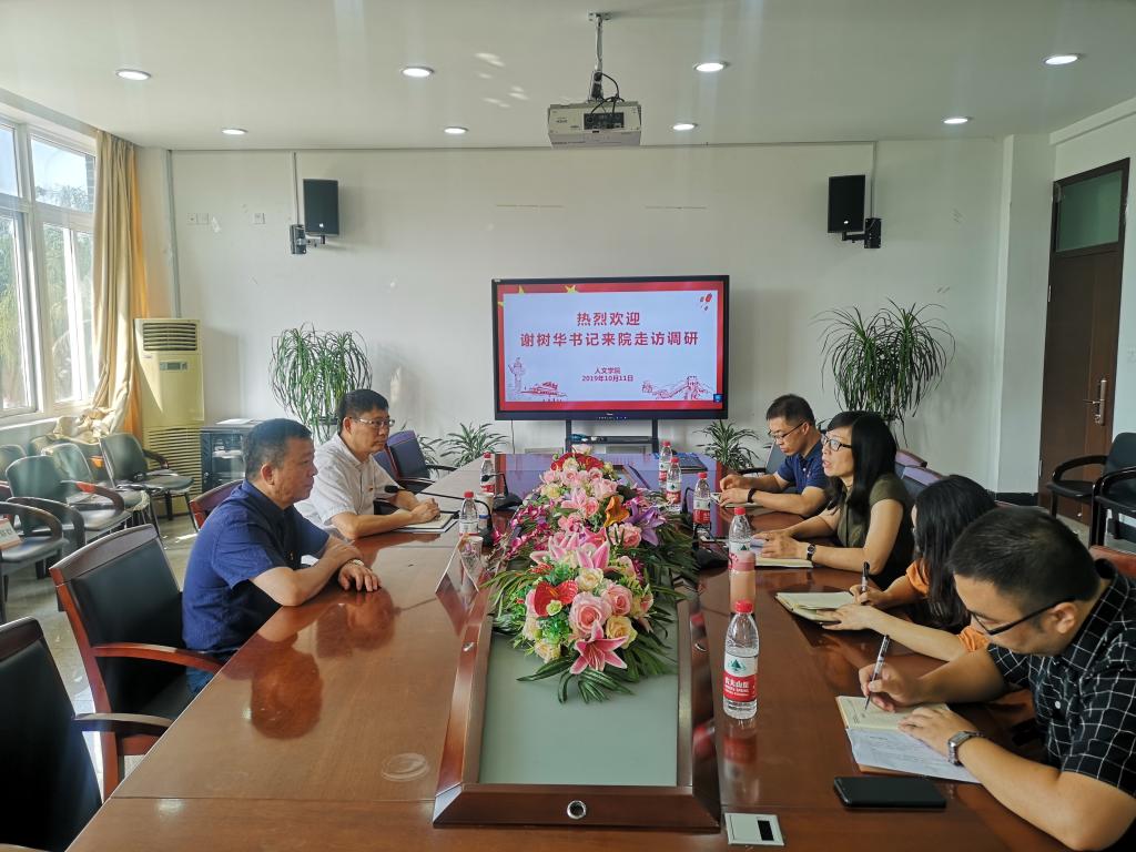 10月11日上午,校党委书记谢树华、党校办主任蔡联群来九色視頻 进行申博工作专项调研。调研会由吴静书记主持,九色視頻 班子成员参加了本次会议。