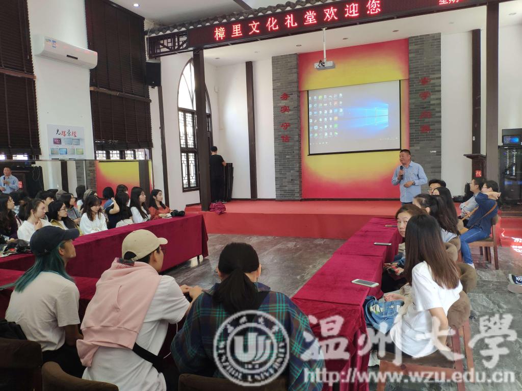 2019年10月22日,九色視頻 广告学专业2017级学生在颜志香老师的带领下,前往温州市七都镇樟里村开展实地考察活动。七都街道党工委委员林放全程陪同,积极为同学们观摩考察答疑,介绍七都乡村建设新成果。