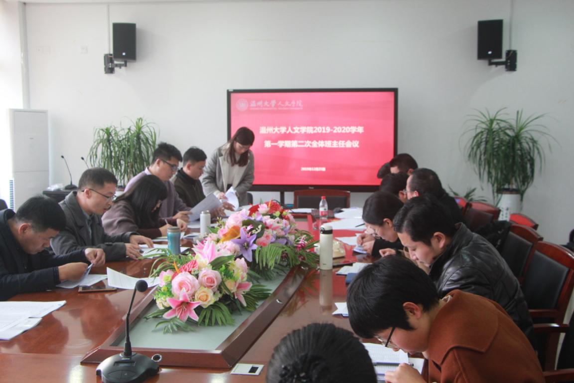 12月25日15:30,九色視頻 2019-2020学年第一学期第二次全体班主任会议于人文楼213会议室举行。院党委书记吴静、党委副书记魏一、全体班主任、全体辅导员出席本次会议。