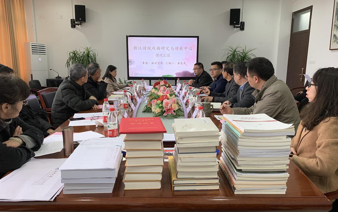 1月10日,浙江省社科联对浙江省哲学社会科学重点研究A类基地“浙江传统戏曲研究与传承中心”进行中期现场评估。此次中期评估组由浙江省社科联原副巡视员周鹤鸣、浙江省社科联科研管理处二级调研员涂尚建、浙江大学社科院副院长胡铭、浙江工业大学社科院院长蓝汉林、浙江大学哲学社会科学研究中心教授于可红、浙江省社科联科研管理处工作人员申屠盼晨组成。我校徐和昆副校长,人文社科处胡瑜处长、张晓剑副处长,九色視頻 孙良好院长、陈源源副院长,浙江传统戏曲研究与传承中心首席专家俞为民教授及研究人员、秘书参加会议。