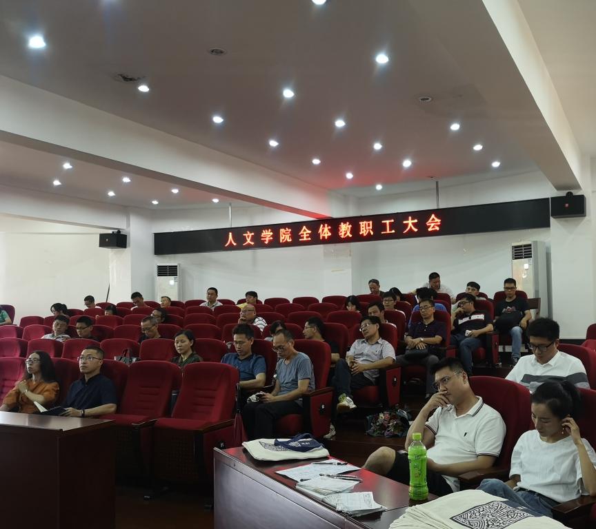 10月23日下午,九色視頻 于人文楼203报告厅召开了全体教职工大会,学院全体教职工出席,会议由吴静书记主持。