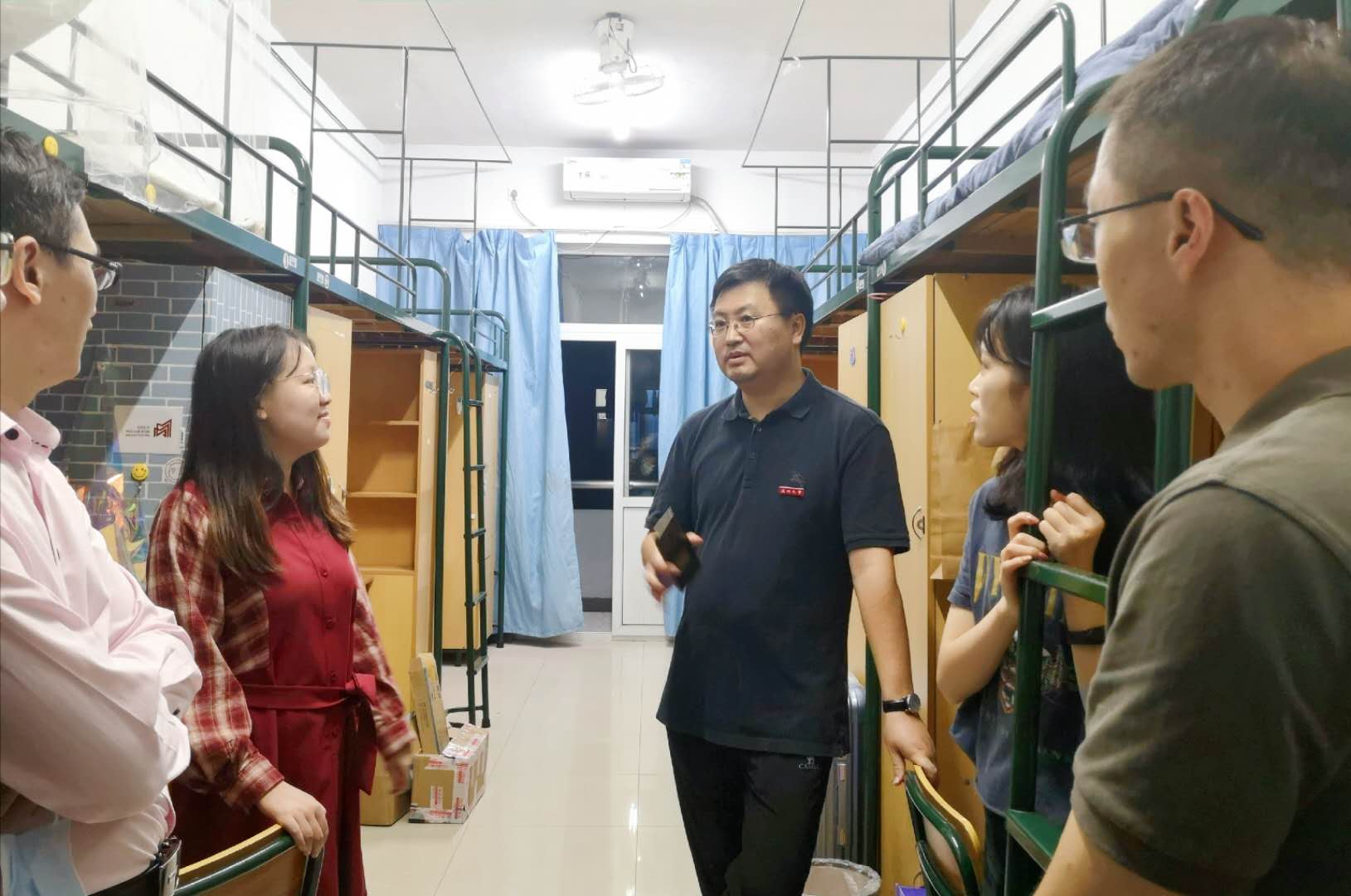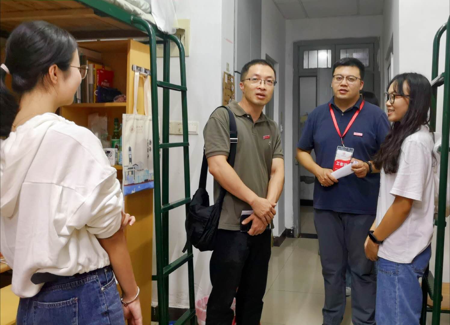 九色視頻 领导非常关心新生报到后的生活适应情况,25号,院长孙良好、院党委书记吴静、副院长郑春生、院党委副书记魏一、副院长陈源源、院长助理张真携辅导员、班主任逐一走访全体新生寝室。在深入走访过程中,就新生的饮食、住宿、环境等问题进行了细致地询问。学院党委书记吴静关心学生选择专业的初衷与对未来的规划,她建议新生同学做好职业规划,积极尝试大学生活的各种活动,并希望同学们在后续生活里奋发有为,积极进取,彼此互帮互助,营造良好的学习环境。