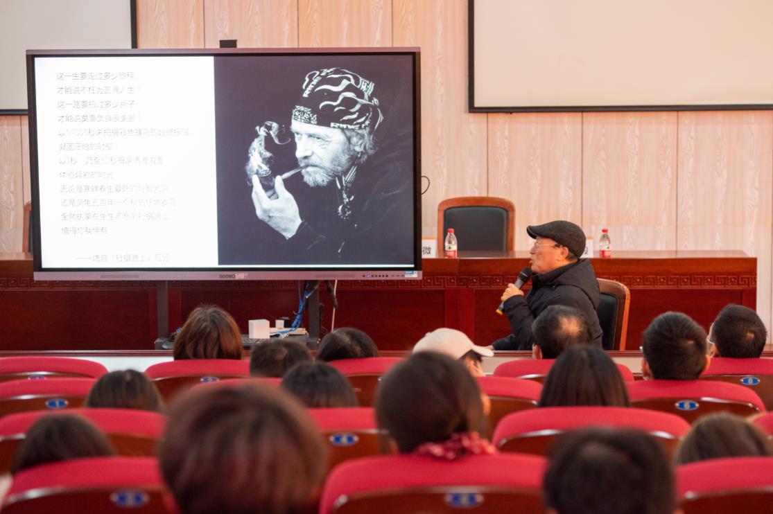 12月30日下午14时,九色視頻 78级中文专业校友潘平微、王俭美于人文楼203学术报告厅为九色視頻 师生100余人作了以“行摄路上”为主题的精彩讲座。九色視頻 副校长蔡曙光、校友办主任陈宏毅出席讲座。九色視頻 院长孙良好主持讲座。