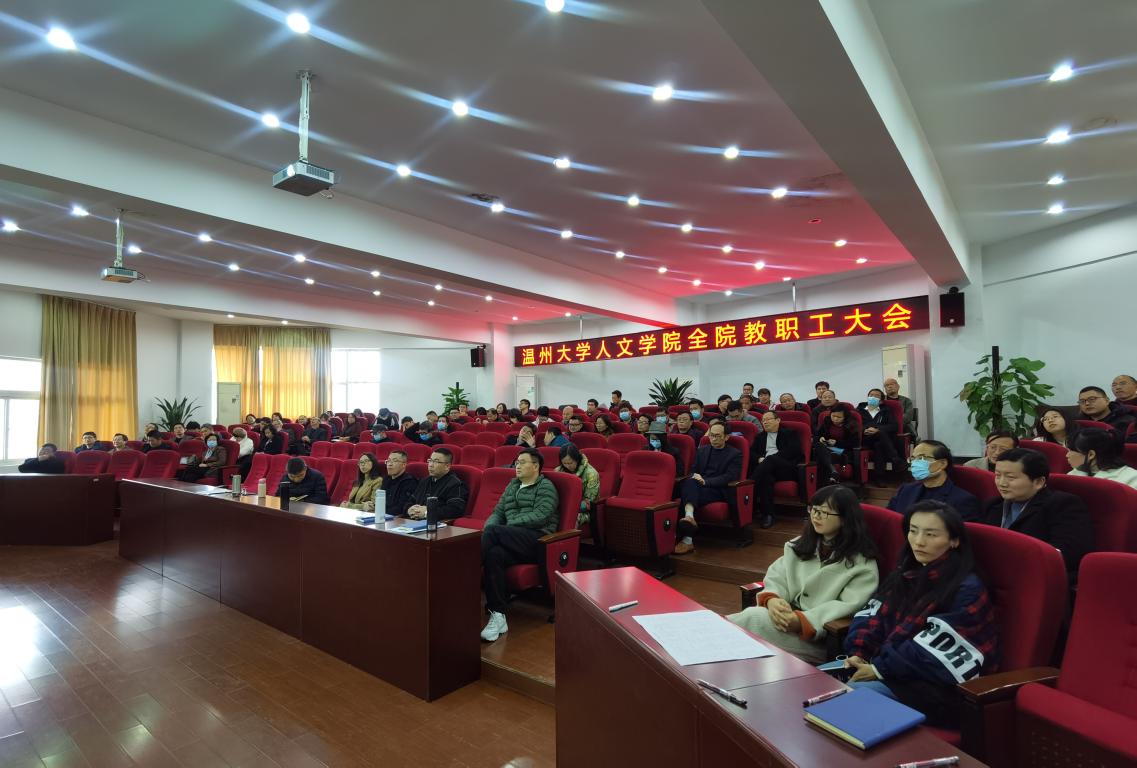 孙良好院长随后作新学期工作报告。他简要总结了2020年学院十大亮点工作,对2021年重点工作做出部署。一是努力做好中国语言文学学科申博最后一环;二是高度重视人才的引育工作;三是精心谋划省一流学科申报、国家社科基金申报、省优秀社科成果奖申报;四是积极推进国家一流专业建设、师范认证工作等、通识教育;五是深化服务地方1+1+1机制;六是改善办学环境;七是促进人才培养、创新创业、就业升学等;八是加强基层组织建设;九是补齐短板;十是十四五学院规划编制。他同时要求全体教师严守政治纪律,维护学院团结,进一步增强专业意识、学科意识、学院意识、学校意识,自觉投身学院学校各项事业建设发展。