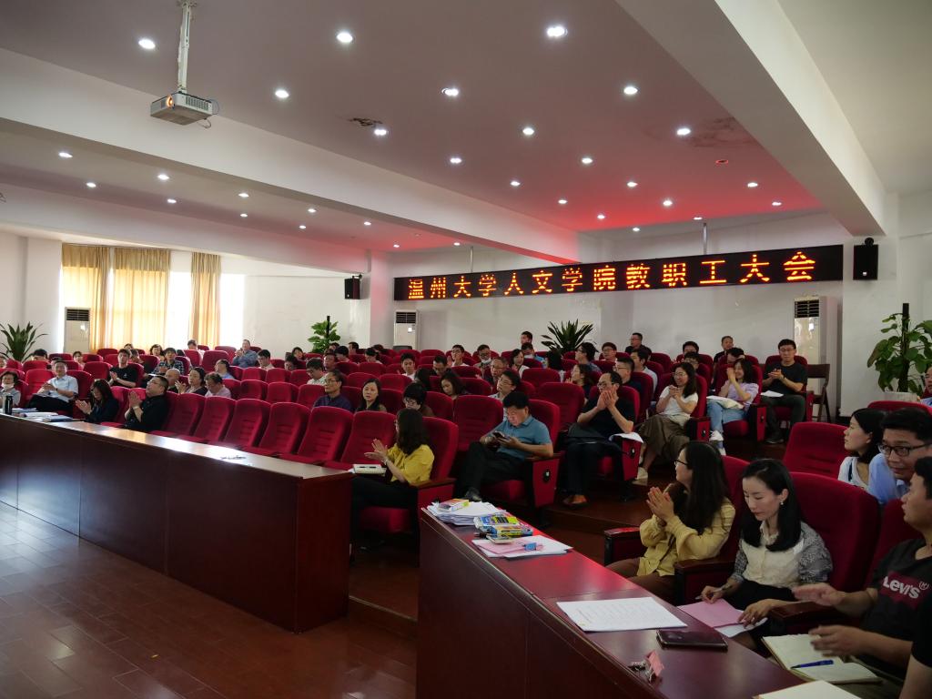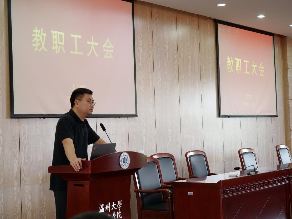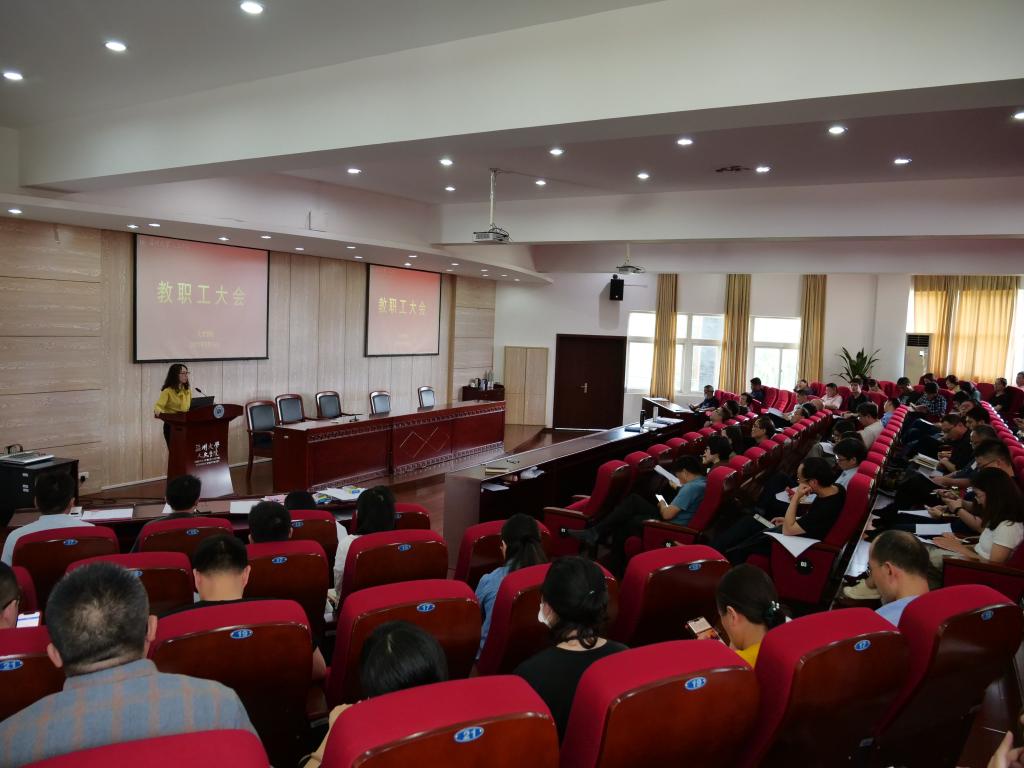 5月26日下午,九色視頻 在203报告厅召开全体教职工大会。会议由学院党委书记吴静主持。