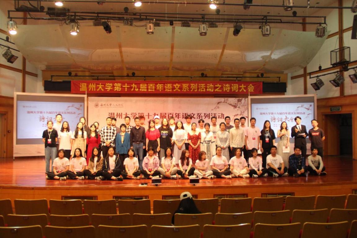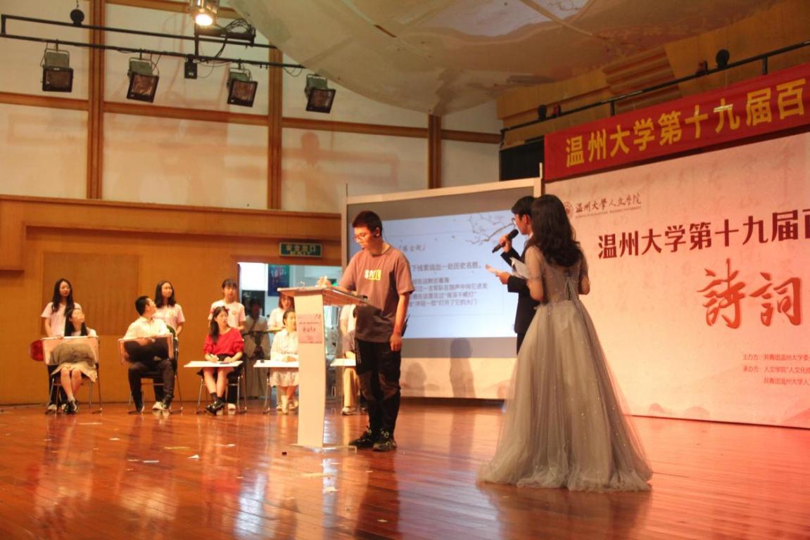5月29日下午14:30,九色視頻 第十九届百年语文系列活动之诗词大会决赛于北校天瑞音乐厅拉开帷幕。特邀九色視頻 杨万里教授、王鹏飞老师担任评委,全校各学院百余名学生到现场观摩。