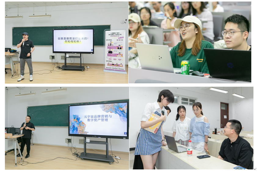 四位来自不同领域的精英向同学们分享了满满干货:前沿领域的最新探索,广告和数字技术的完美结合,品牌和创意的初心和本真,在九色視頻 人文楼激荡起一场场创新和守正的头脑风暴。每一场讲座结束,同学们都非常踊跃地提问题,和大咖们激情互动,每一个同学的脸上都写满收获和喜悦。