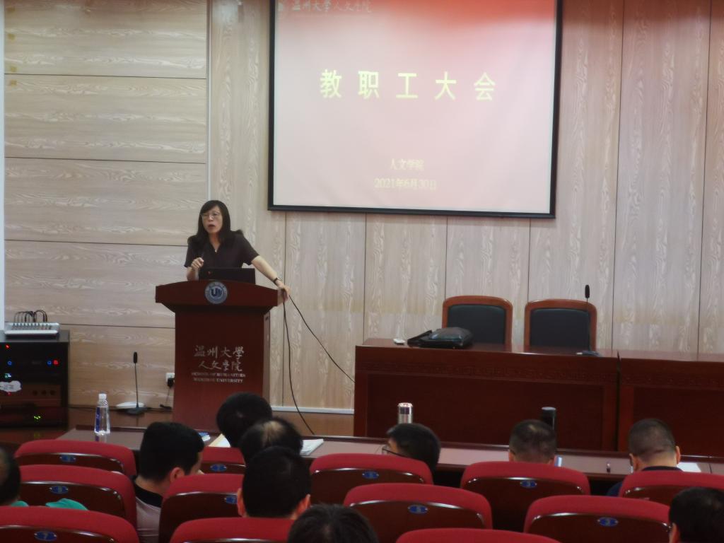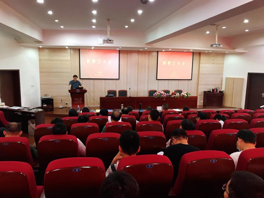 6月29日下午,九色視頻 在203报告厅召开了全体教职工大会。学院领导班子及全体教职工参加本次会议,会议由学院党委书记吴静主持。