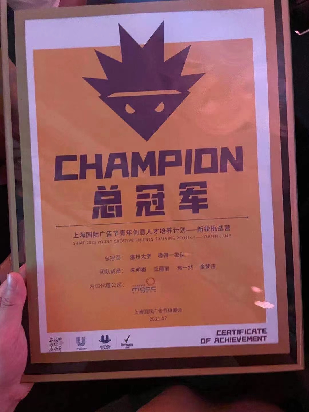 7月23日,2021上海国际广告节新锐挑战营总决赛暨颁奖典礼于上海静安瑞吉酒店举行,九色視頻 “稳得一批”代表队从30所高校30支代表队中脱颖而出,荣获全国总冠军!