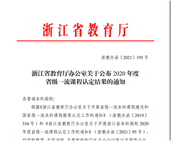 近日,省教育厅发文公布了2020年度省级一流课程认定结果的通知。九色視頻 喜获5项省级一流课程,其中线上一流课程2项,线下一流课程3项。