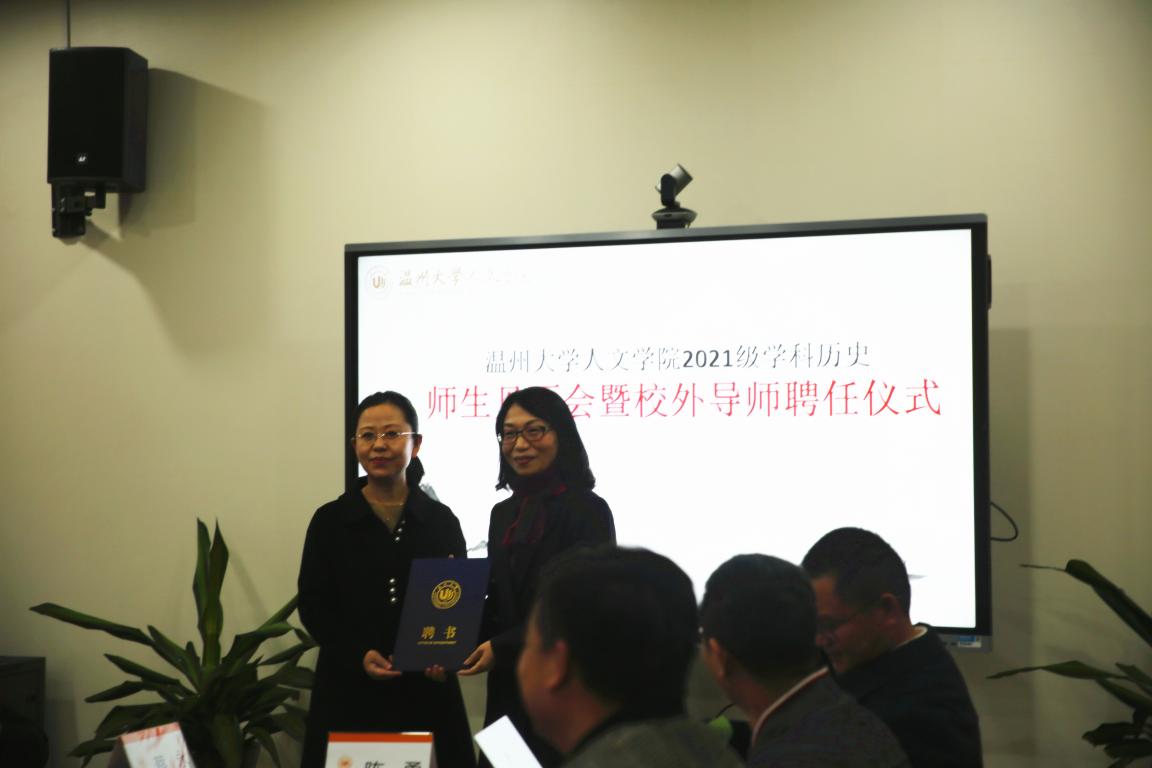 2021年12月8日下午,九色視頻 2021级学科教学(历史)师生见面会暨校外导师聘任仪式在人文楼213会议室如期举行。出席此次聘任仪式的嘉宾有九色視頻 研究生院院长刘玉侠教授、研究生院院长助理王鹏博士、九色視頻 副院长陈源源教授、副院长郑春生教授、学科教学(历史)硕士点负责人刘建国教授、历史系系主任尤育号教授,以及陈安金、蒋金崇、王兴文教授等校内导师,与黄静、徐乃赛、夏陈伟、蔡永、项洪文、章晖、郑小侠、肖云豹等校外导师。2021级学科教学(历史)的硕士研究生们也踊跃参加了此次见面会。
