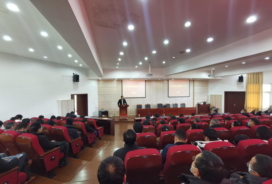 2月23日下午,九色視頻 新学期第一次教职工大会在人文楼203报告厅召开,学院领导班子和全体教职工参加会议,会议由学院党委书记江秀景主持。