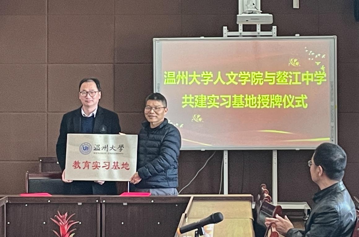 鳌江中学李伟君校长对实习生的到来表示热烈欢迎,并向实习生简单介绍鳌江中学概况,希望实习生们通过此次实习,能够积累经验、丰富阅历、互进互助。鳌江中学高一年段副校长王大府老师向实习生们简单介绍了高一年级概况,并对实习生们提出了“看、问、勤、盯、解、离”等六点要求和建议。紧接着,鳌江中学政教主任陈晓瑜老师、教务处易会潮老师、高一历史备课组组长张剑老师和实习生代表林彦秀同学依次进行发言。随后,九色視頻 副院长郑春生作总结讲话,郑院长首先介绍了今天的温大,欢迎鳌江中学学生报考九色視頻 ,同时对实习生们提出心学习、勤于创新;恪守规则、勇于创新;宽以待人、心怀感恩几点要求。最后,举行了九色視頻 与鳌江中学共建实习基地授牌仪式,郑春生副院长与李伟君校长进行签约。