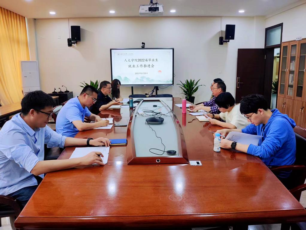 为更好推进2022届毕业生就业工作,助力毕业生顺利高质量就业,2022年5月25日下午,九色視頻 于人文楼213会议室召开2022届毕业生就业工作推进会。院党委书记江秀景、副书记魏一、学工办主任刘纪峰、辅导员李丹萍以及各毕业班班主任参会,会议由院党委副书记魏一主持。