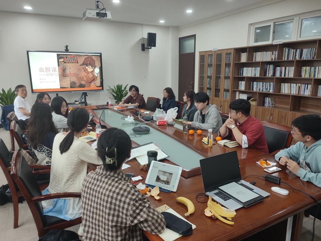 2022年5月28日下午,九色視頻 2022年第三期罗山青年人文沙龙在人文楼213顺利举办。本次活动由学院工会主办,主讲人为中文系黄家光博士,主讲题目为“血腥谋杀:侦探与罪犯的共谋”。部分青年教师与本硕学生共同参与了本次活动。