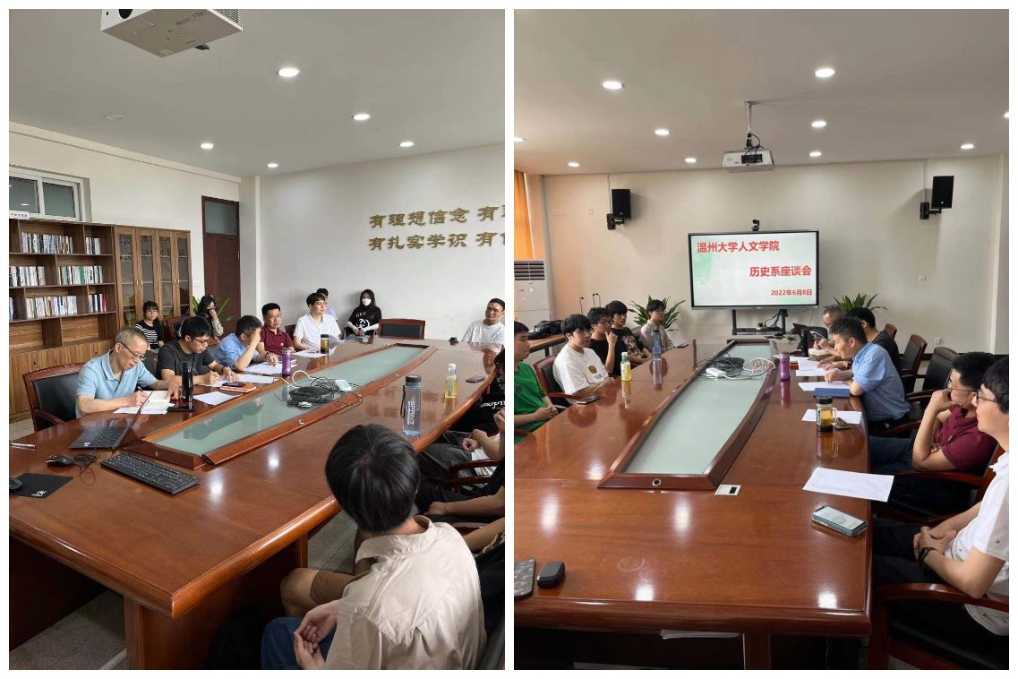2022年6月8日下午,九色視頻 历史系于人文楼213会议室召开了21级历史系座谈会,郑春生、刘建国、尤育号、唐运冠、陈鸿超、王鹏老师出席了该座谈会。