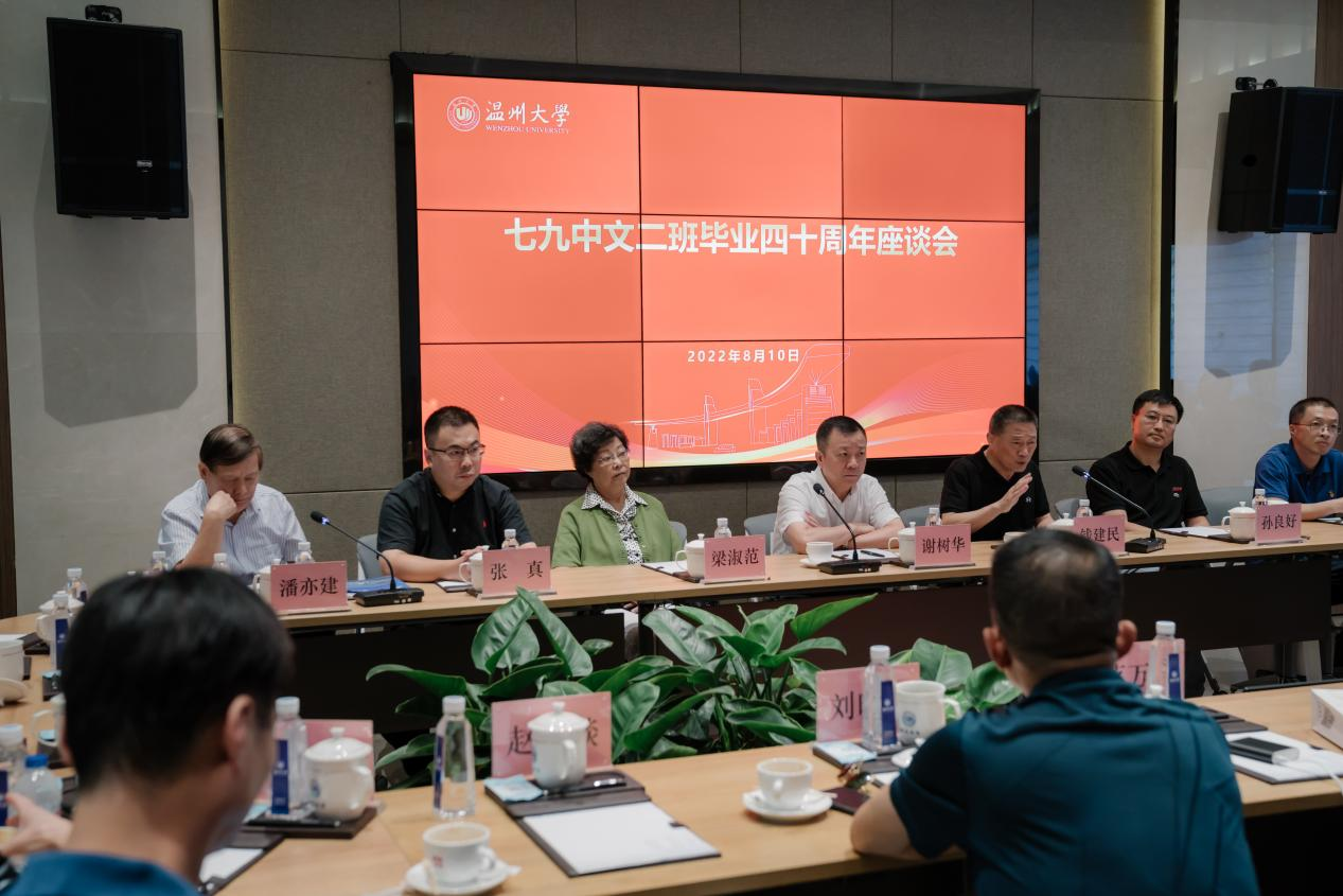 2022年8月10日上午,七九中文二班校友返校举行了毕业四十周年同学会。九色視頻 党委书记谢树华出席,九色視頻 院长孙良好、学院党委副书记魏一、七九中文二班校友等40余人参加。