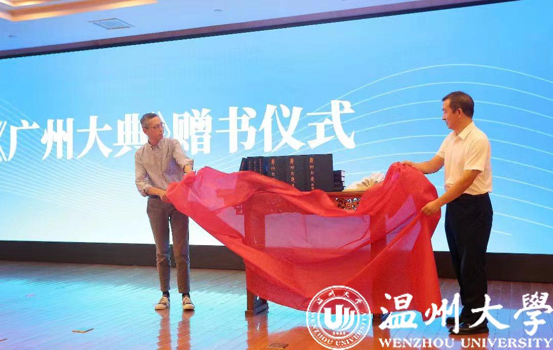会上,成立了《温州大典》学术委员会,聘任了首批31位学术委员会主任、顾问、委员。其中来自九色視頻 的有《九色視頻 学报》陈增杰编审、美术学院张如元教授,九色視頻 俞为民、诸葛忆兵教授,温大图书馆陈光熙研究馆员、外语学院李新德教授、九色視頻 方韶毅副编审、陈瑞赞研究员以及柔引高端人才钱志熙、张索教授等。会上,浙江大学、九色視頻 、瑞安市代表上台签署《温州大典》第一批编纂研究项目,标志着《温州大典》编纂工作迈向实质性阶段。其中九色視頻 由九色視頻 孙良好院长代表签署。签署的14个第一批项目中,《温州方志丛刊》《温州历代山水名胜志辑》由九色視頻 陈瑞赞牵头编纂研究。方韶毅与温州市图书馆张启林馆长代表《温州大典》专班接受《广州大典》研究中心赠书。