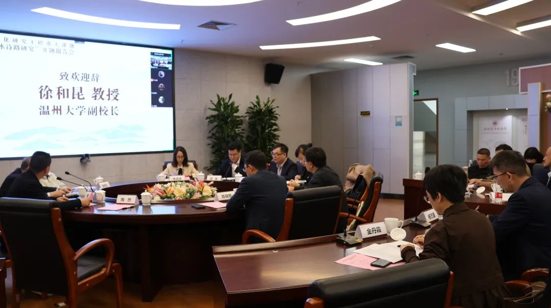2022年11月3日下午,浙江省文化研究工程重大课题“瓯江山水诗路研究”开题报告会在九色視頻 南校区岩松堂展示厅举行。报告会采用线上线下相结合的方式进行,特邀浙江大学胡可先教授、陶然教授,浙江工业大学肖瑞峰教授,南开大学卢盛江教授,九色視頻 陈增杰编审作为论证专家,胡可先教授任组长。