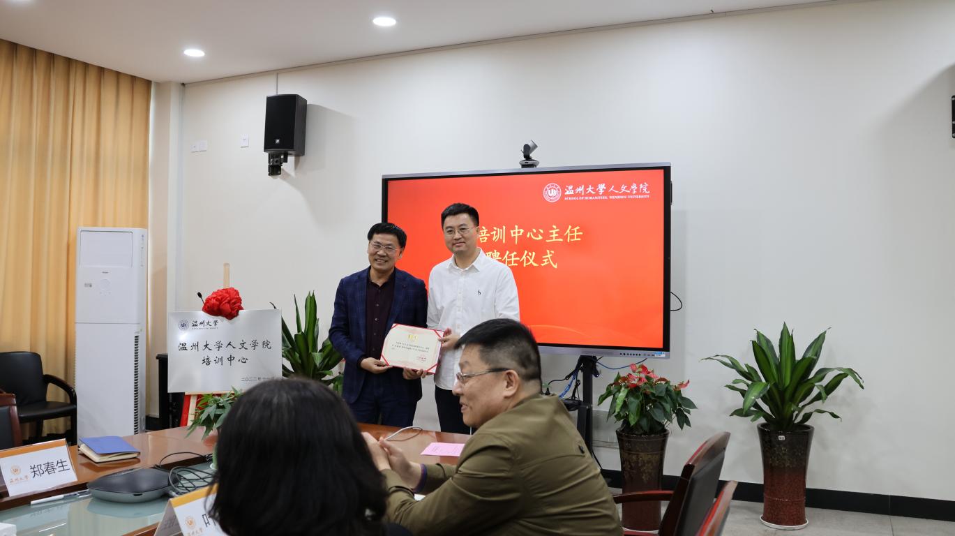 会议伊始,郑春生副院长宣读了九色視頻 培训中心成立文件。随后,孙良好院长和熊琳处长一起为培训中心授牌,并为刘建国教授颁发了培训中心主任聘书。之后,中心主任刘建国教授、熊琳处长和江秀景书记分别讲话。刘建国主任表示,以后将充分利用九色視頻 自身优秀师资和丰富校友资源,推出中小学教师及社会喜爱的培训课程。熊琳处长对温大非学历政策作了细致解读,并期待九色視頻 打造精品培训项目、为地方社会发展作更大贡献。江秀景书记表示,学院将大力支持培训中心工作,同时希望培训中心以“规范化”“优质化“ “品牌化“,扩大九色視頻 影响力,助推九色視頻 发展。