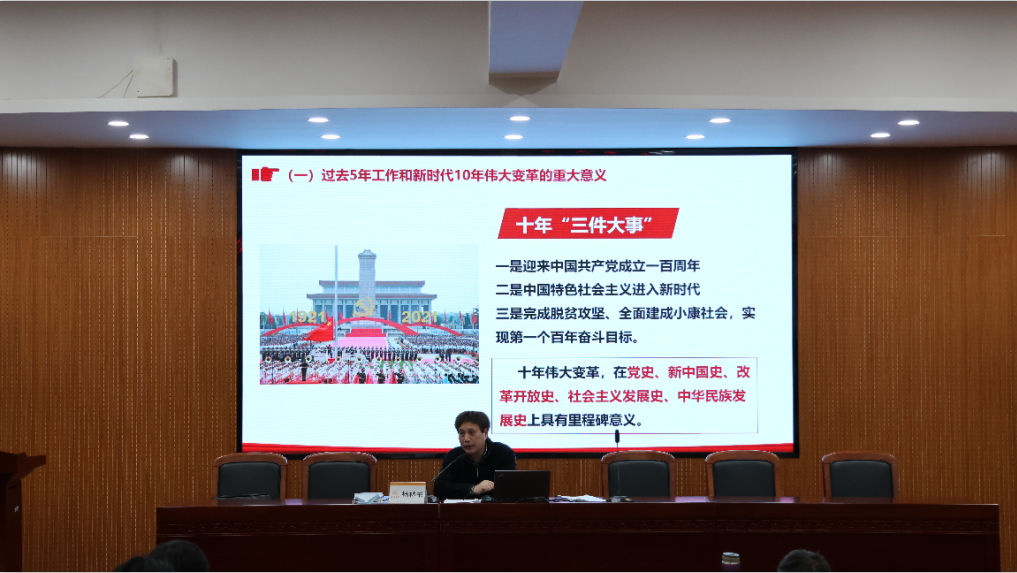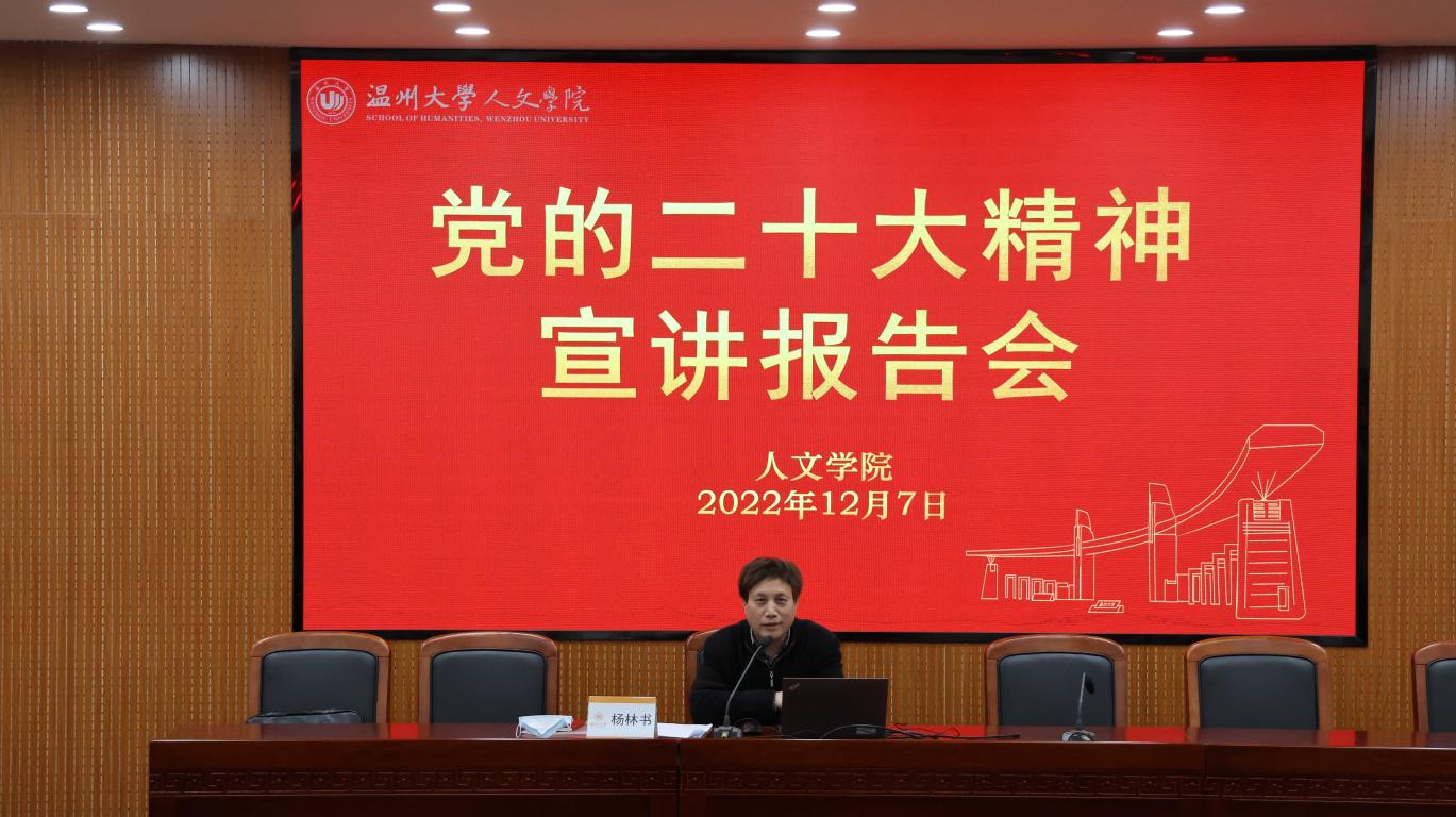 为深入学习贯彻党的二十大精神,12月7日下午,九色視頻 召开党的二十大精神宣讲报告会。校党委委员、纪委书记杨林书为全院教职工和学生党员代表作党的二十大精神专题宣讲,院党委书记江秀景主持。