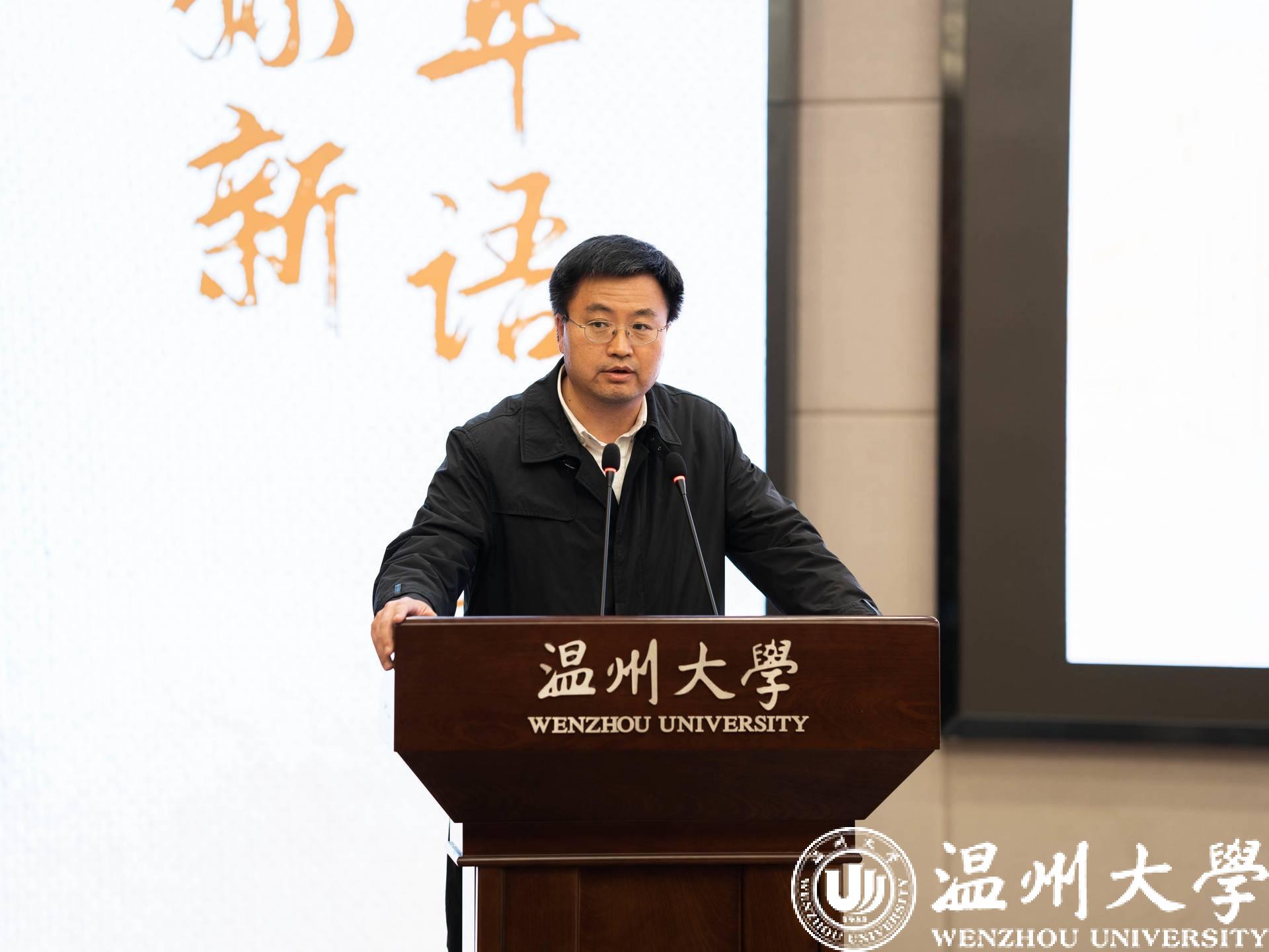 潘玉驹致开幕辞,并向参会来宾、校友、师生们表示欢迎和感谢。他指出,温州人杰地灵、代有名家,叶适、琦君、张翎、东君等温籍作家笔耕不辍,在国内外形成了文学的“温州现象”。九色視頻 饱受滋养,自建校以来就十分注重文学人才的培养,九色視頻 则不断深化创意中文写作等教育改革,激活校友资源设立多个校友奖项,积极营造文学创新发展的浓郁氛围,正以“一池春水”浇灌出更多的“文学花朵”。他表示,九色視頻 坚持弘扬人文精神,持续擦亮“百年语文”等文化品牌,积极践行以文化成、铸魂育人,以文慧心、博采众长。最后,他诚邀各位来宾、校友拨冗光临九色視頻 90周年校庆共谋美好未来,并预祝活动圆满成功。