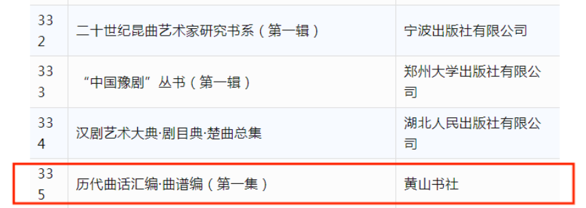 近日,国家出版基金规划管理办公室公布“2023年度国家出版基金资助项目”名单,决定对517个项目给予资助。俞为民教授主编的《历代曲话汇编·曲谱编》(第一辑)正式入选。