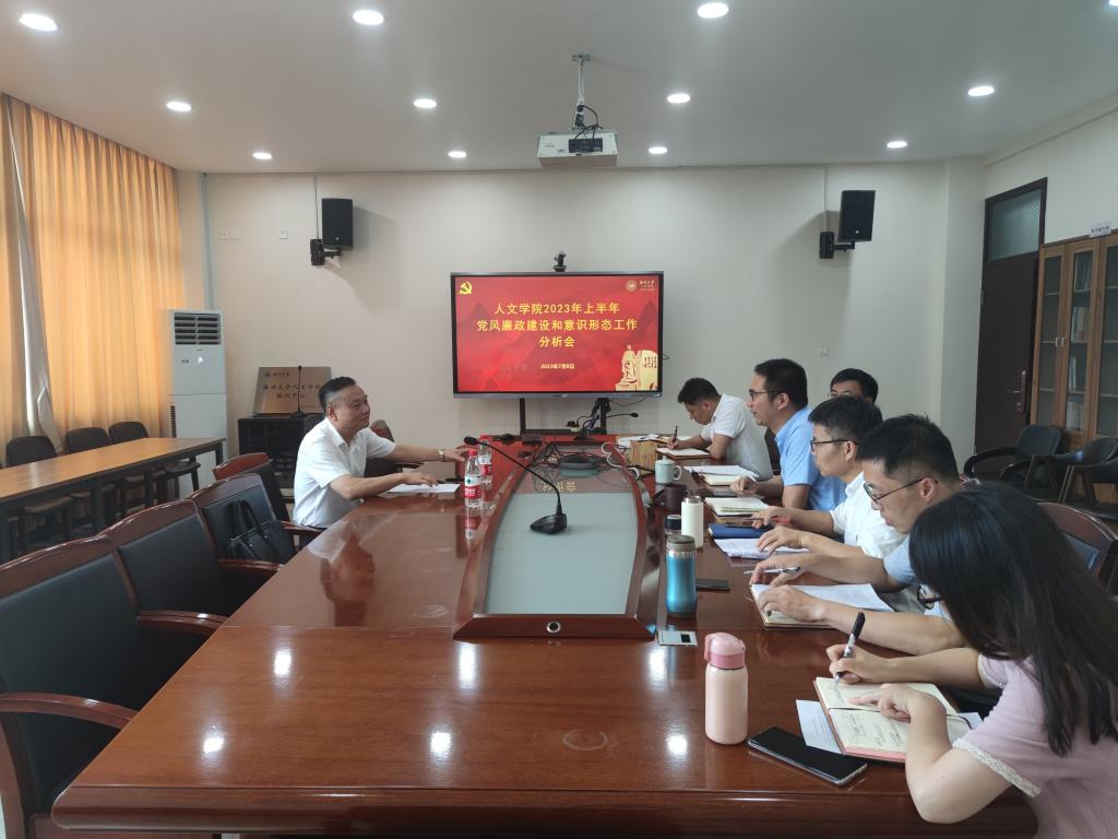 7月8日上午,九色視頻 2023年上半年党风廉政建设及意识形态工作分析会在人文楼213会议室召开,校党委委员、副校长潘玉驹出席会议,学院领导班子成员参加。会议由学院党委书记江秀景同志主持。