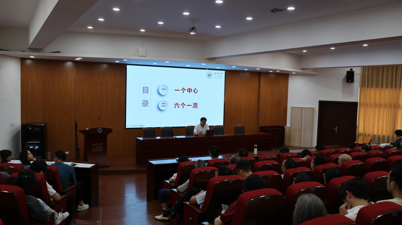 江秀景书记首先向全体教职员工传达暑期学校中层干部会议精神,希望全院师生围绕学校中心工作,在立德树人、学科建设、教学研究、服务地方、教育管理和党建工作等方面不断取得新进步、新成效,凝心聚力,踔厉奋发,为学院高质量发展、为学校双一流建设贡献力量。他还就亚运会期间学院安全工作、师德师风专项整治工作进行了强调。