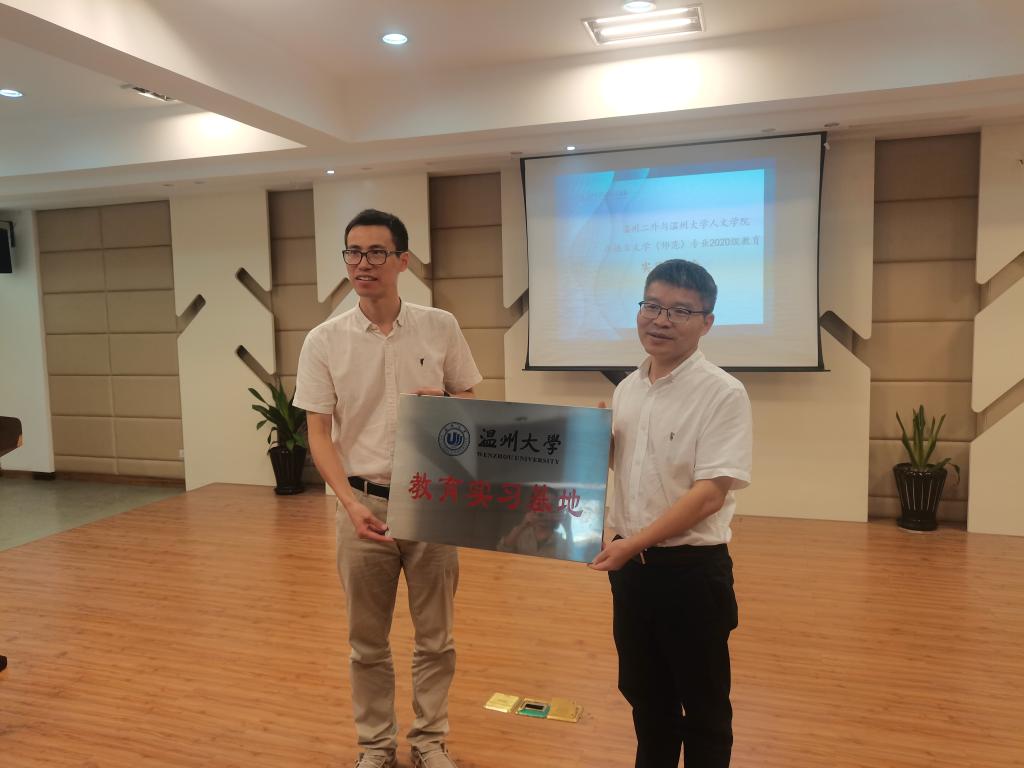 随后,郑院长为温州市第二外国语学校的实习导师发放聘书并合影留念。