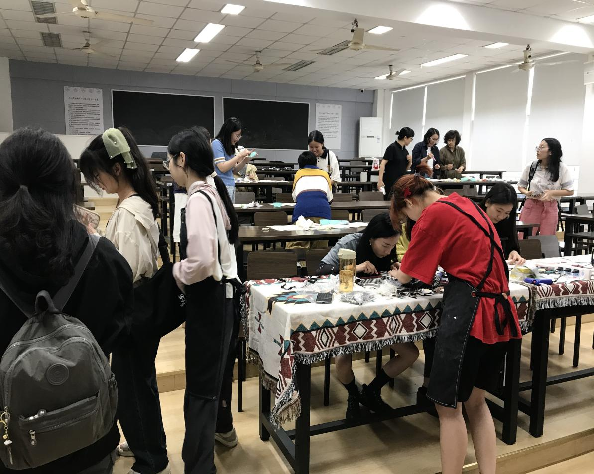参与活动的师生认真惊叹于活动材料与场地环境的精良,秉持精益求精的精神完成一件件精美的发卡作品。一位来自计算机学院的同学认真体验了多种发卡的制作过程,对本次活动赞不绝口。教师们也是流连忘返,认真做起了“学生”,制作出一件件富有创意的精美作品。