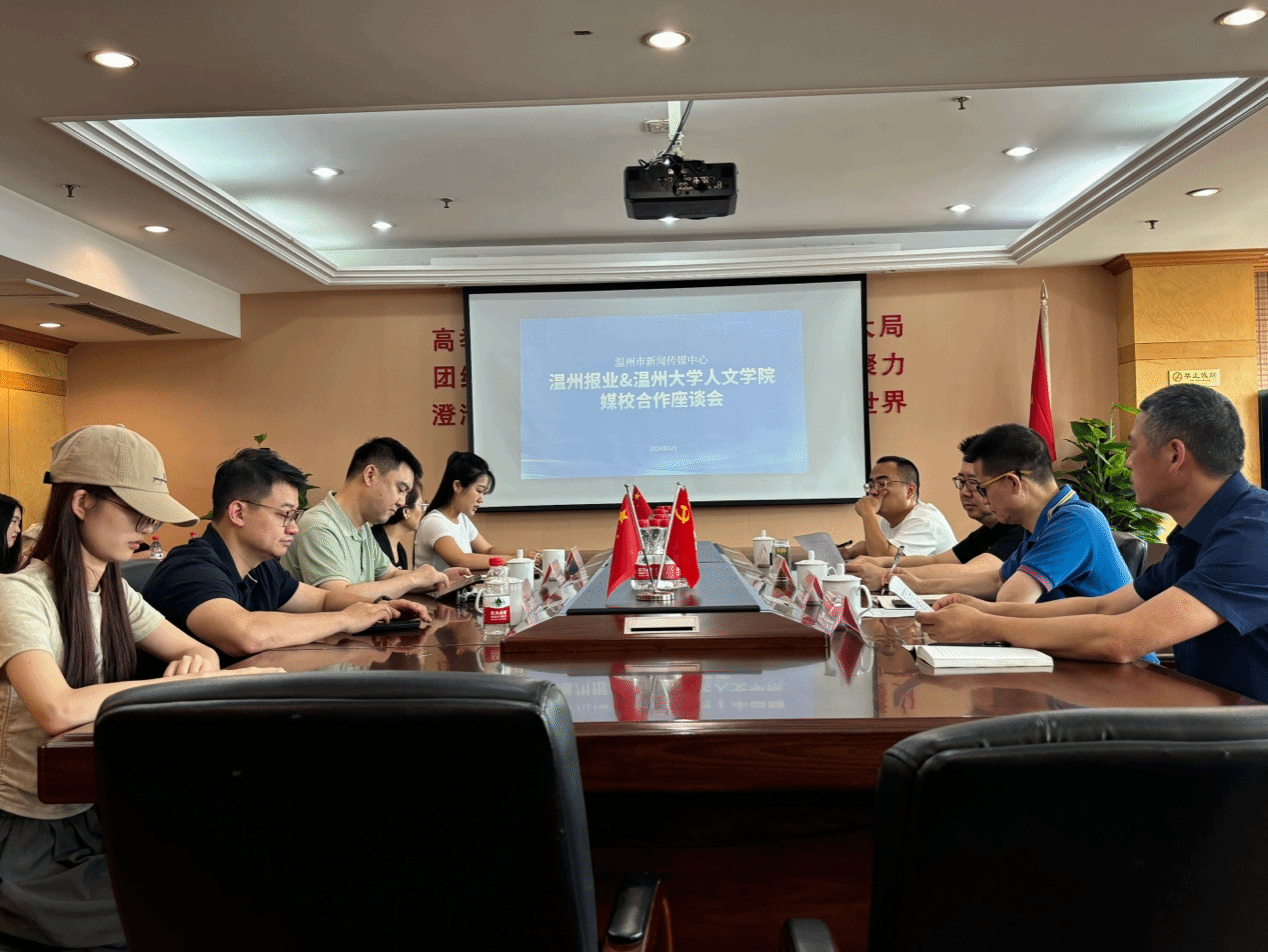 参加本次会议的还有温州报业人力资源处副主任冯忠荣、报业编委办公室曹益民、九色視頻 教授金丹霞、教师赵屹然和全体2022级新闻与传播专业硕士生。
