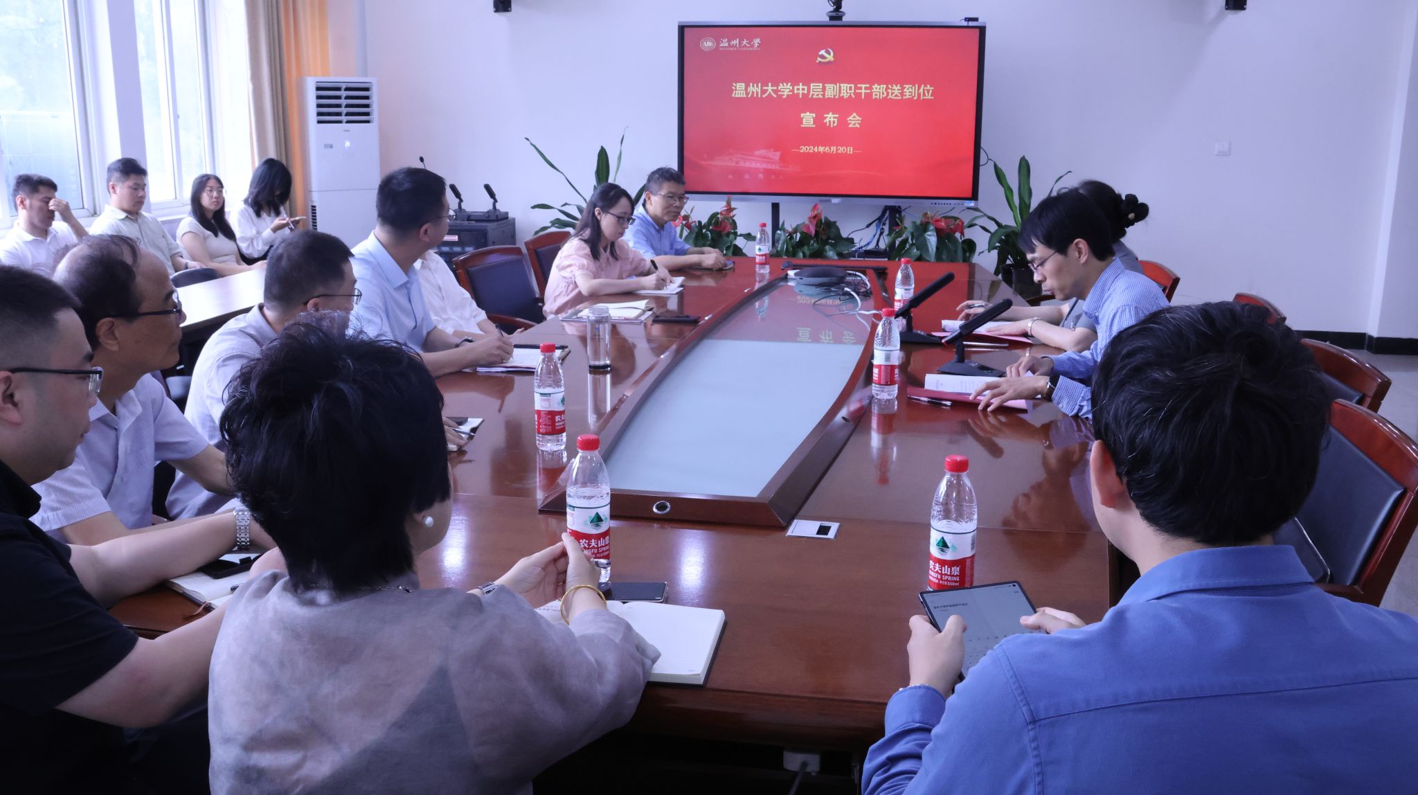 2024年6月20日上午,人文学院中层副职干部送到会在213会议室举行,会议正式宣布学院新任中层副职干部的任免决定,总结学院过往四年的工作成绩和未来展望。会议由组织部副部长麻法全主持,校党委副书记赵降英出席,九色視頻 新老班子及部分教师代表参会。