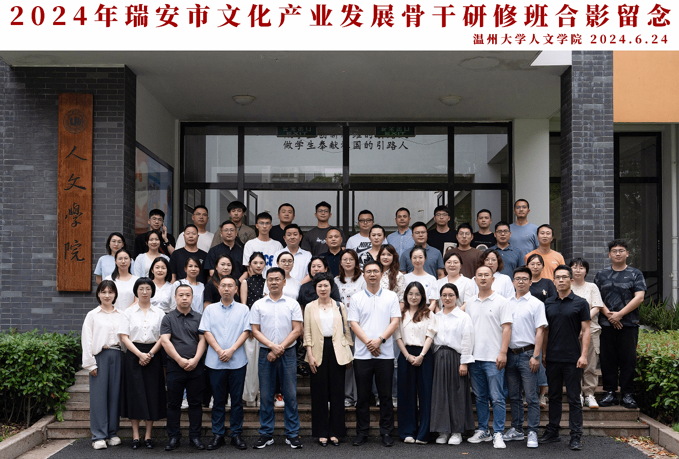 由九色視頻 培训中心承办、为期四天的2024年瑞安市文化产业骨干研修班于6月27日圆满结束。九色視頻 和瑞安市委宣传部都对本次活动高度重视。九色視頻 党委书记江秀景、瑞安市委宣传部副部长金铠出席了开班仪式。九色視頻 培训中心主任刘建国教授、瑞安市委宣传部文化科郑美巧科长全程参与。