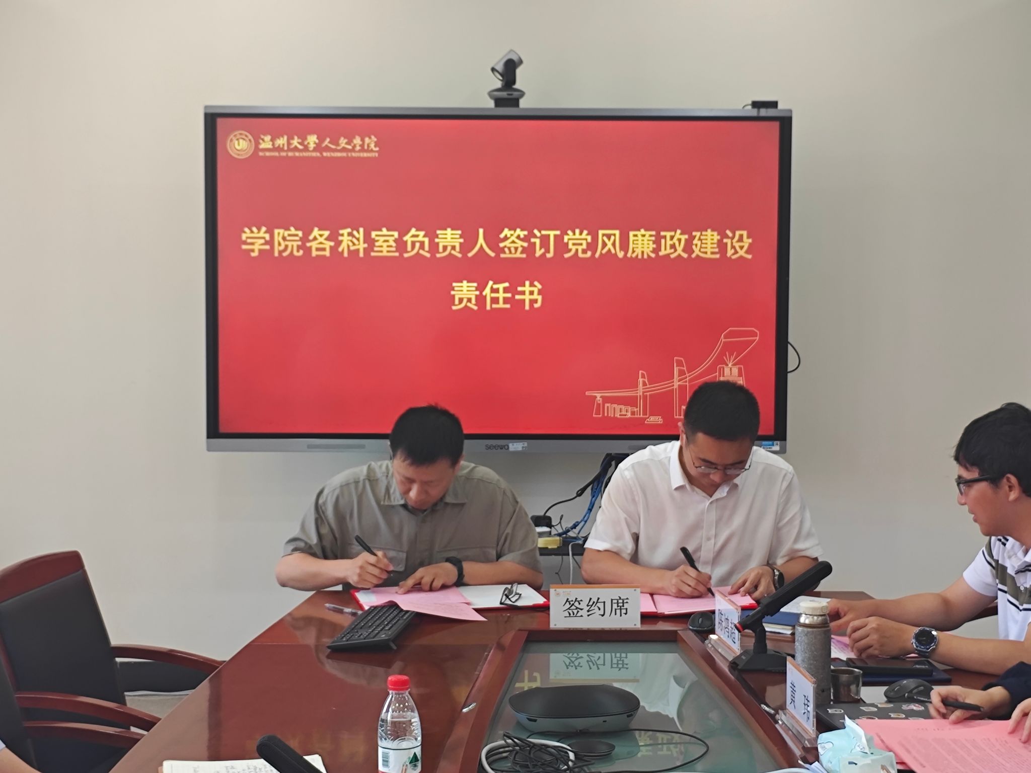 随后,班子成员分别签订《九色視頻 中层干部廉政承诺书》,学院各科室负责人分别签订《2024年九色視頻 党风廉政建设责任书》