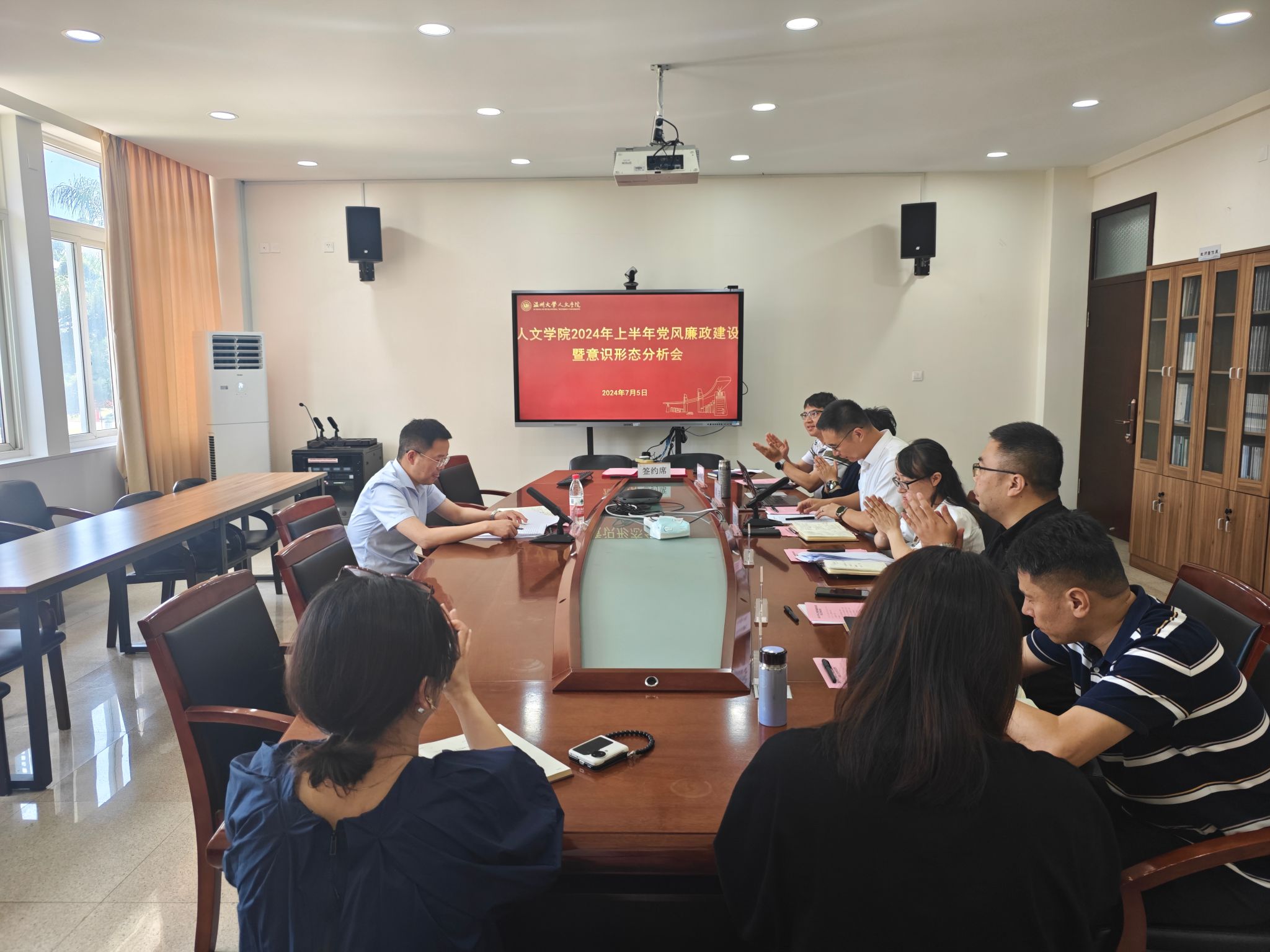 7月5日下午,九色視頻 2024年上半年党风廉政建设及意识形态工作分析会在人文楼213会议室召开,九色視頻 副校长、党委委员王尧骏出席会议,学院领导班子成员参加。会议由学院党委书记江秀景同志主持。