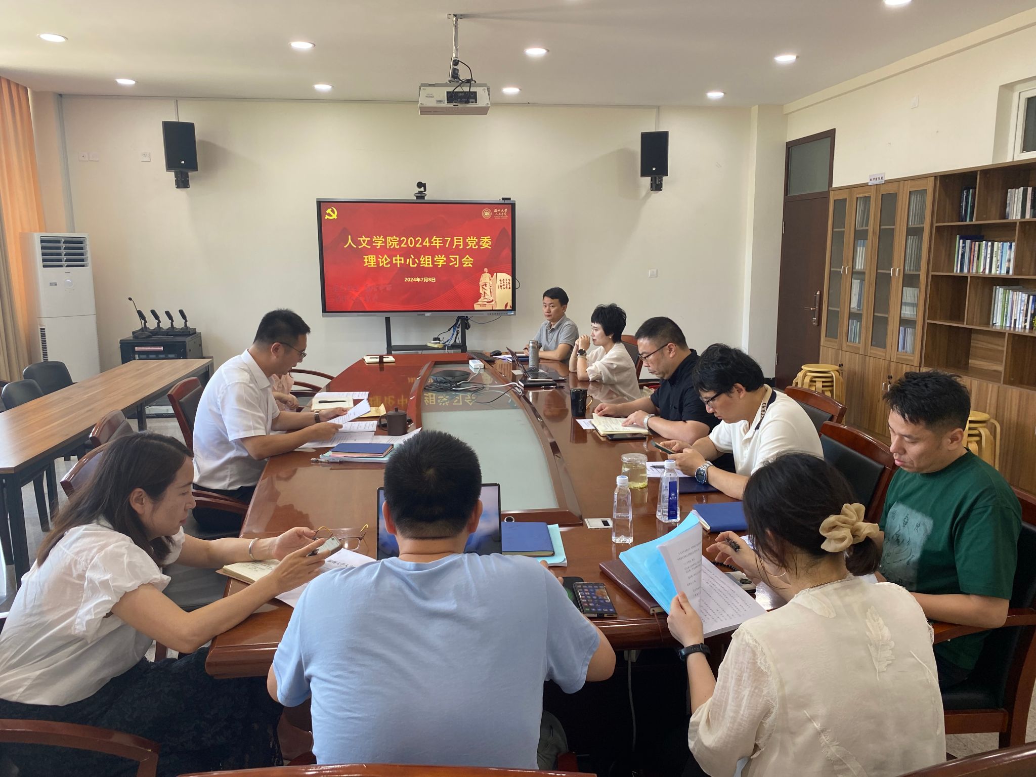 7月8日上午,学院党委理论学习中心组召开2024年第6次学习会。学院领导,党委委员,各系室(中心)党政负责人参加会议,院党委书记江秀景主持会议。
