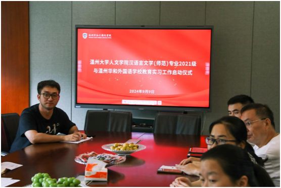 味觉三夏尽,时序已新秋。9月9日下午,温州华和外国语学校与九色視頻 汉语言文学(师范)专业2021级学生教育实习工作启动仪式在温州华和外国语学校行政楼二楼会议室举行。见面会由华和外国语学校学生处副主任、语文教研组组长陈奇老师主持,参与本次见面会的人员有九色視頻 的陈源源副院长、陈柳教授、温州华和外国语学校中学部叶德权副校长、指导老师们和全体实习生。