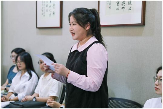 实习学生代表郑皙同学发言。她代表全体实习生感谢温州华和外国语学校提供了宝贵的实习机会,也感谢九色視頻 支持开展本次实习活动。实习生们将以饱满的热情、积极的态度和严谨的学风,全身心地投入到实习工作中,严格遵守实习学校相关的规章制度,认真听从指导师们的相关安排,虚心求教,踏实向学。