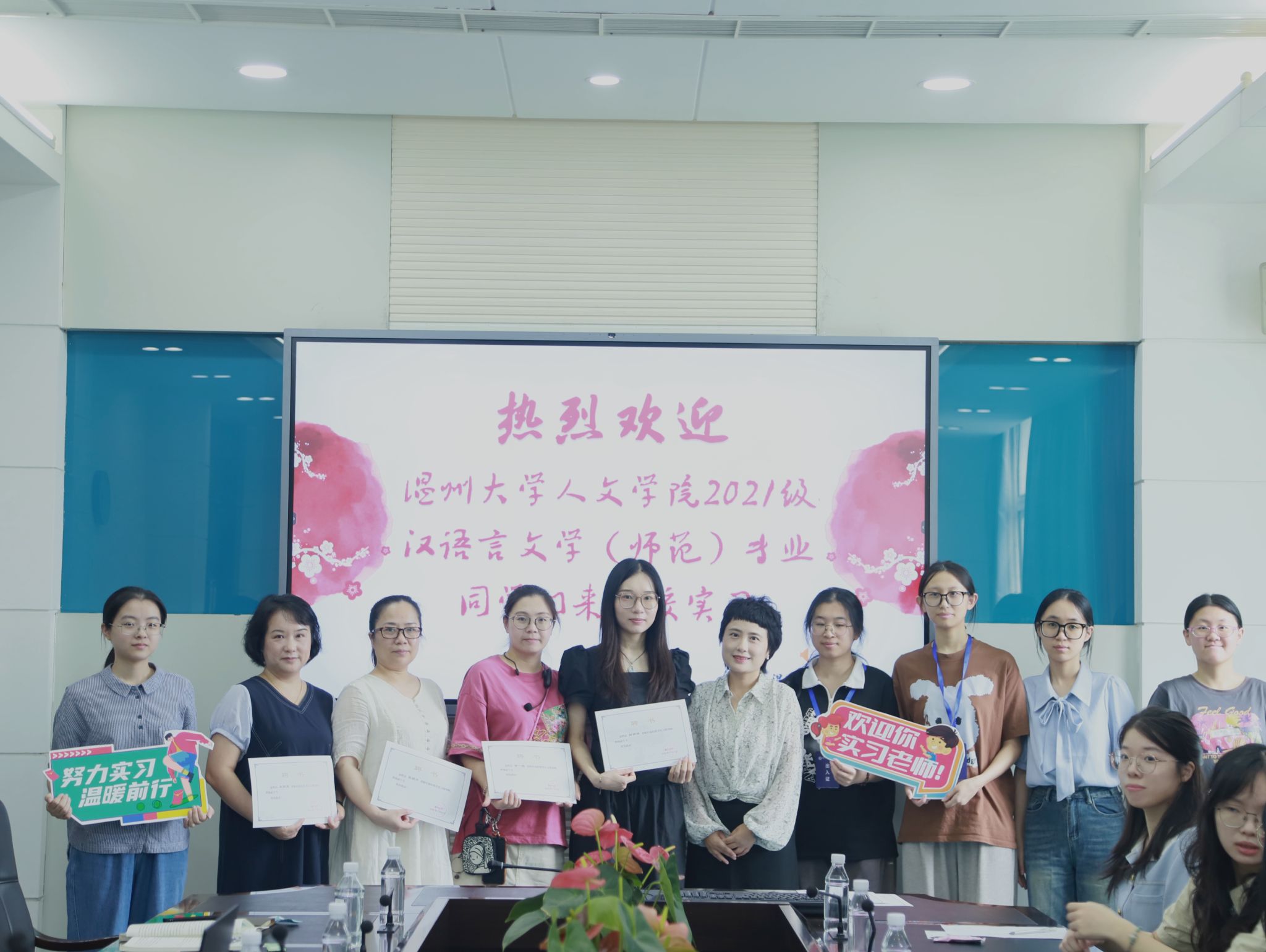 9月10日,恰逢第40个教师节,九色視頻 汉语言文学(师范)专业实习生见面会在温二实勤政楼402会议室举行。本次会议由教务处主任冯超伟主持。出席本次会议的人员有九色視頻 党委副书记黄玮、中文系陈心浩老师、蔡嵘老师、温二实教学副校长陈珊景、政教处副主任钱聪、指导老师们和我们全体实习生。