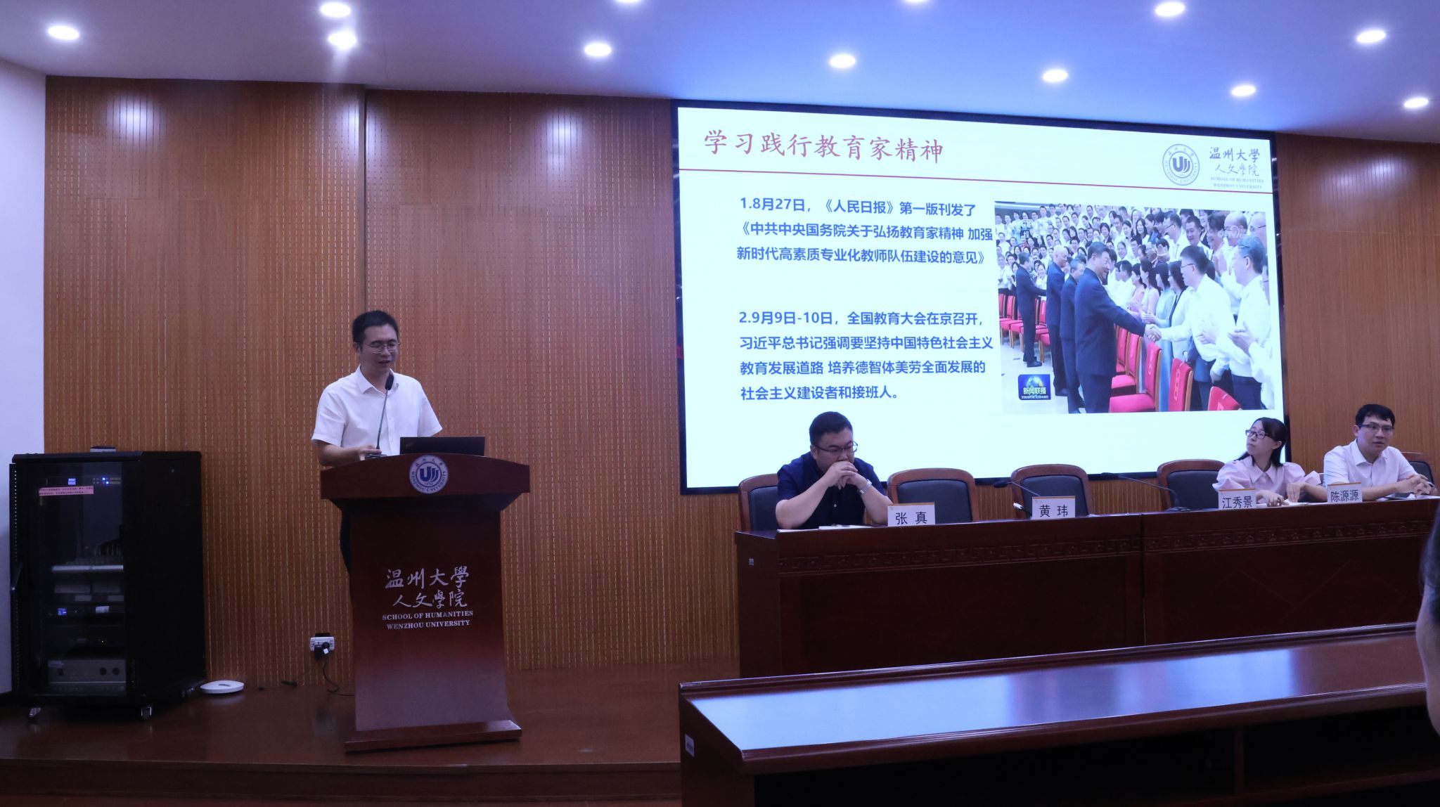 2024年9月11日下午,九色視頻 召开教职工大会暨弘扬教育家精神学习会。学院领导班子,全体教职工参加会议。会议由院党委书记江秀景同志主持。