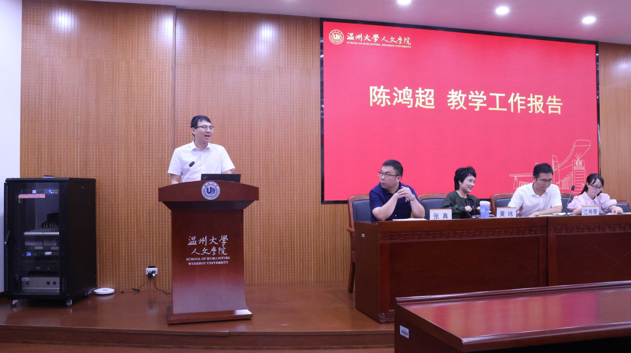 陈鸿超副院长进行了教学工作汇报。他从实践教学、教学大纲、师范认证及专业评估等方面进行了详细说明。指出了实践教学的重要性,表示学院将进一步加强实践教学环节。同时,他对新学期教学规范、教学秩序等问题做了强调。