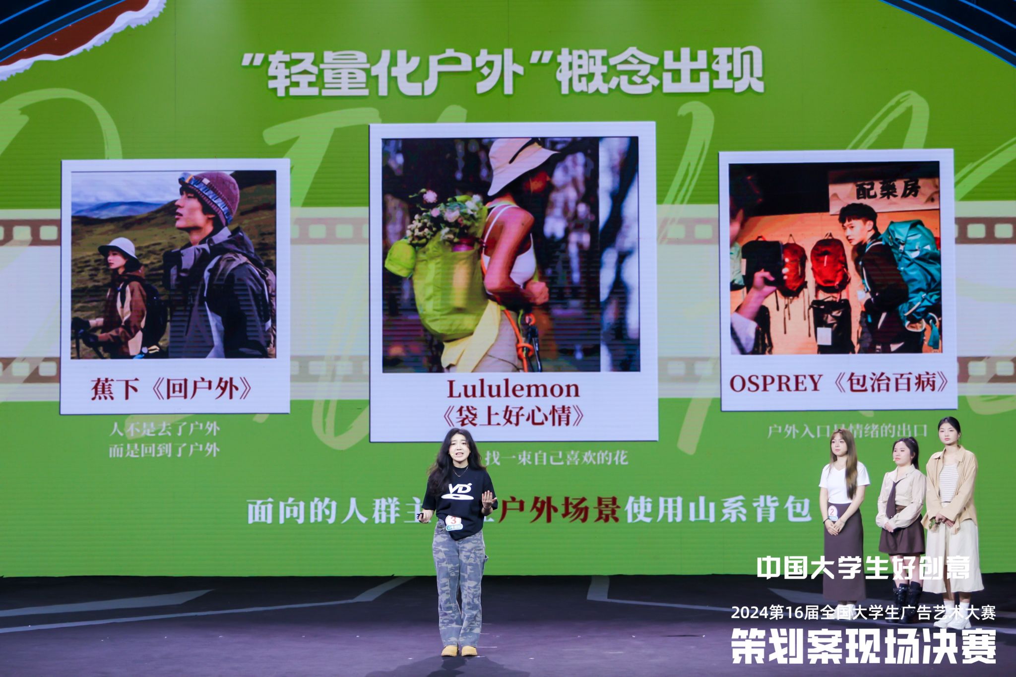 第16届全国大学生广告艺术大赛优秀作品众多,组委会从入围全国的20545件策划案中,经过层层选拔,评审出19件获得全国二等奖及以上荣誉的策划案作品,再通过现场陈述、提案、答辩,按照评委打出的总分进行排名,本届策划案现场提案决赛九色視頻 展演的《不在山里也要野》得到了学界、业界评委们的综合好评与广泛认可。划案现场提案决赛不仅是对高校广告创意人才的一次大考,也成为大学生们展示创意实力和综合才华的舞台。