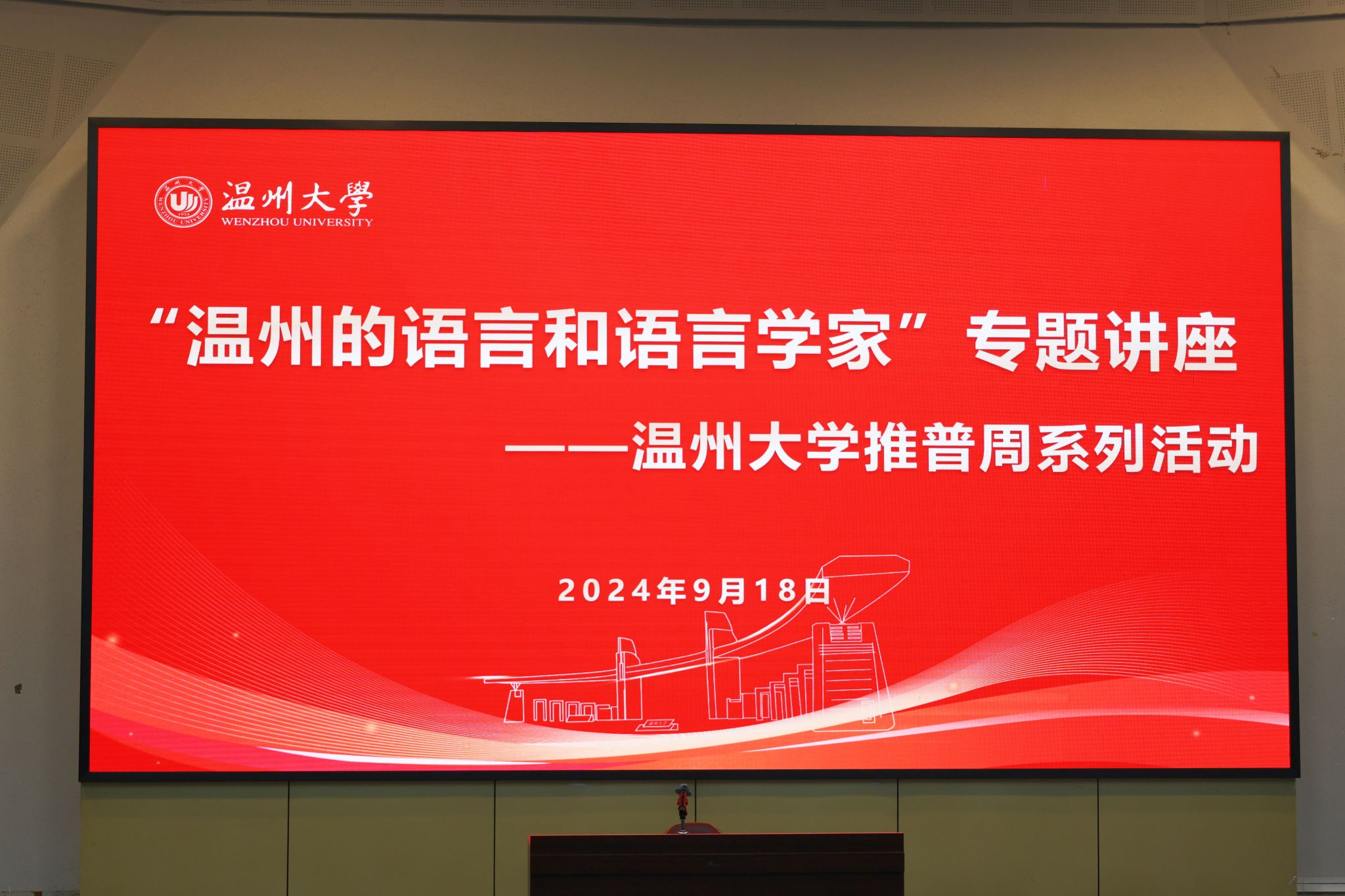 2024年9月18日晚,秋风送爽,细雨绵绵。苏步青学院报告厅内灯火通明,来自九色視頻 、马克思主义学院、外国语学院和教育学院的全体师范专业新生,齐聚一堂,共同参与了一场别开生面的语言文字文化盛宴。此次活动由国家语言文字推广基地(九色視頻 )主办,骆锤炼老师担任主持人,特邀著名语言学家金理新教授担纲主讲。