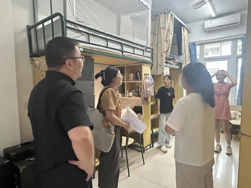 为全面了解新生入学情况、帮助新生尽快适应大学生活,九色視頻 党委书记、副院长江秀景,副院长陈源源,院党委副书记黄玮,副院长张真,副院长陈鸿超,院长助理鲍良兵,2024级各班班主任及全体辅导员、班助代表深入2024级新生寝室看望慰问学生,传递人文关怀。