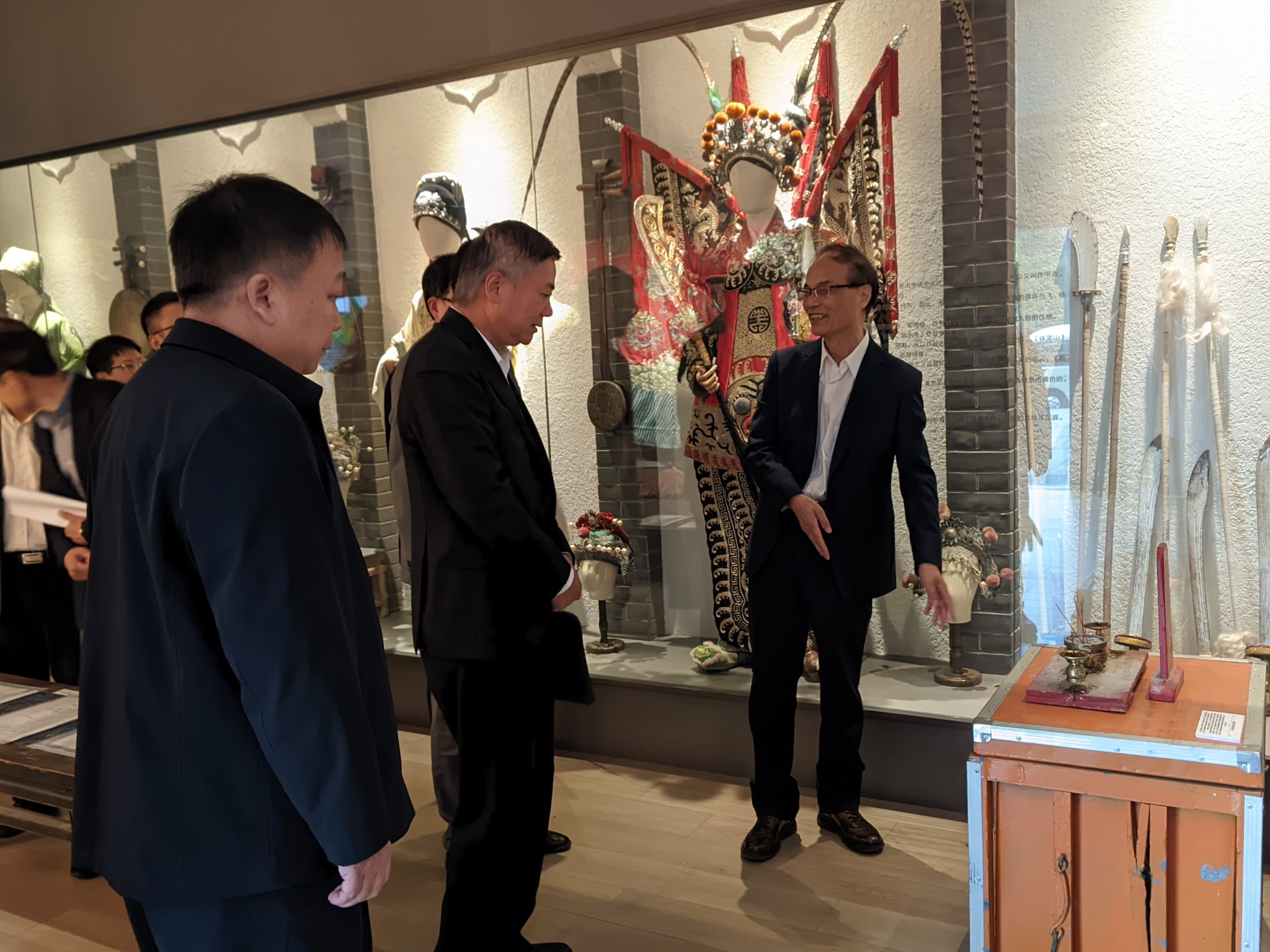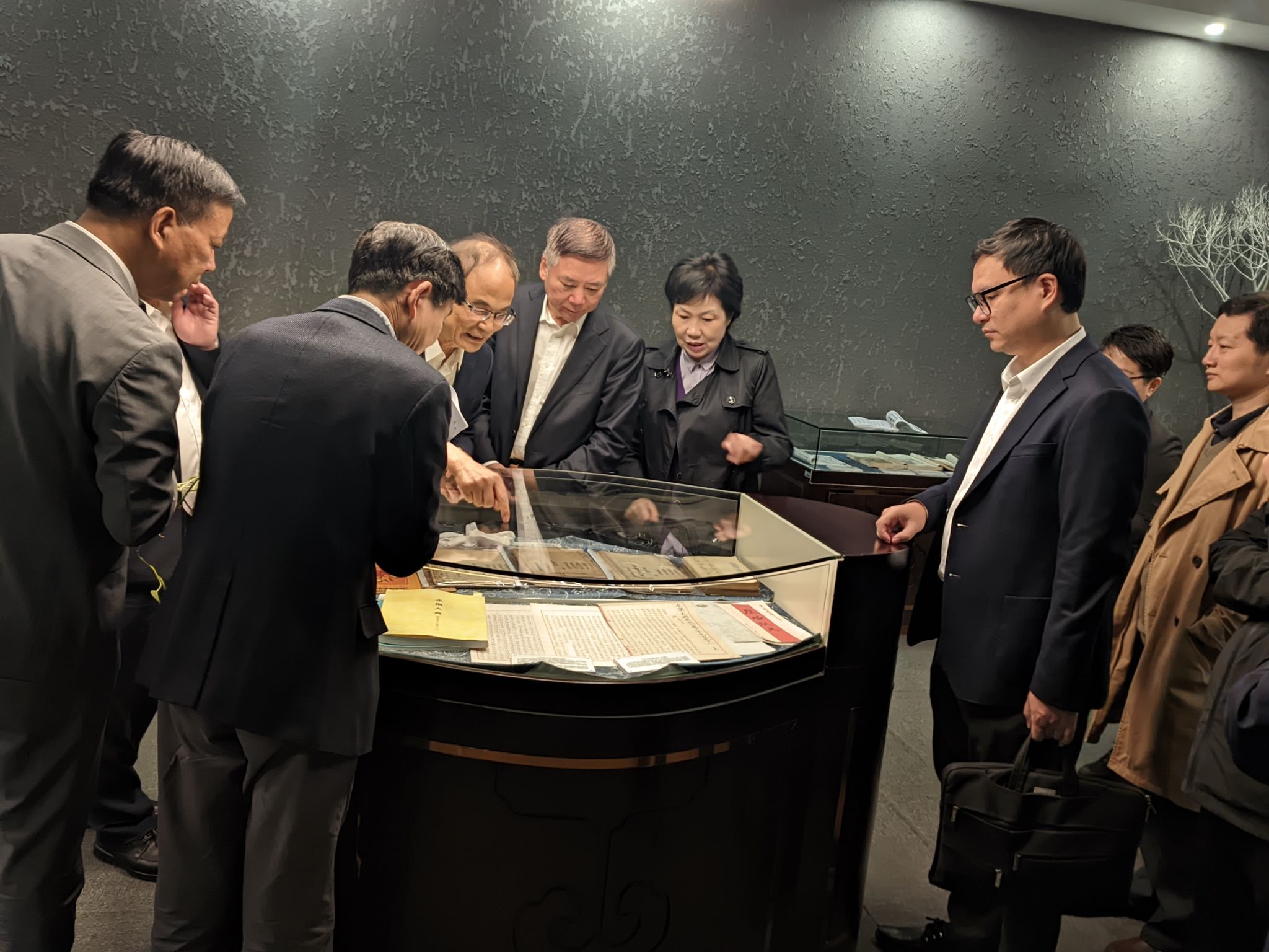 葛益平一行首先考察了九色視頻 浙江传统戏曲研究与传承中心,详细了解了基地在戏曲文物典藏、学术研究、人才培养等方面的进展情况。在珍贵的古籍文献前,葛益平仔细端详,认真听取了俞为民教授的介绍。基地丰富的馆藏和深厚的研究底蕴给考察组留下了深刻印象。