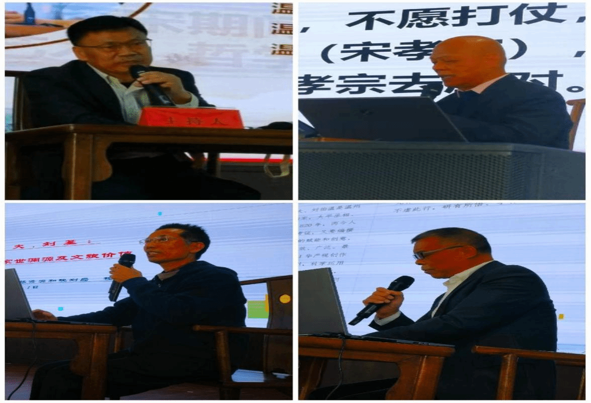 12月1日上午,研学团队师生从九色視頻 启程,抵达文成县周必大展示馆参观后,在文成县大峃镇屿根文化礼堂举办了“周必大研学文成行”会议,九色視頻 刘建国教授担任主持人,周必大研究会顾问李碧叶老师讲解了周必大的生平事迹,并介绍了周必大与温州的渊源,他提出要加强对周必大研究的重视;温州市国学文化研究会会员程庆国老师为大家讲解了富弼、周必大、刘基的关系,强调发掘三位历史名人的文旅价值以助力共同富裕;温州学研究会副秘书长金浩先生代表温州学研究会向大会致以热烈祝贺,并阐述了“温州学”与“周必大研究”的内在联系,提出光大温州学,做有本土特色的研究。