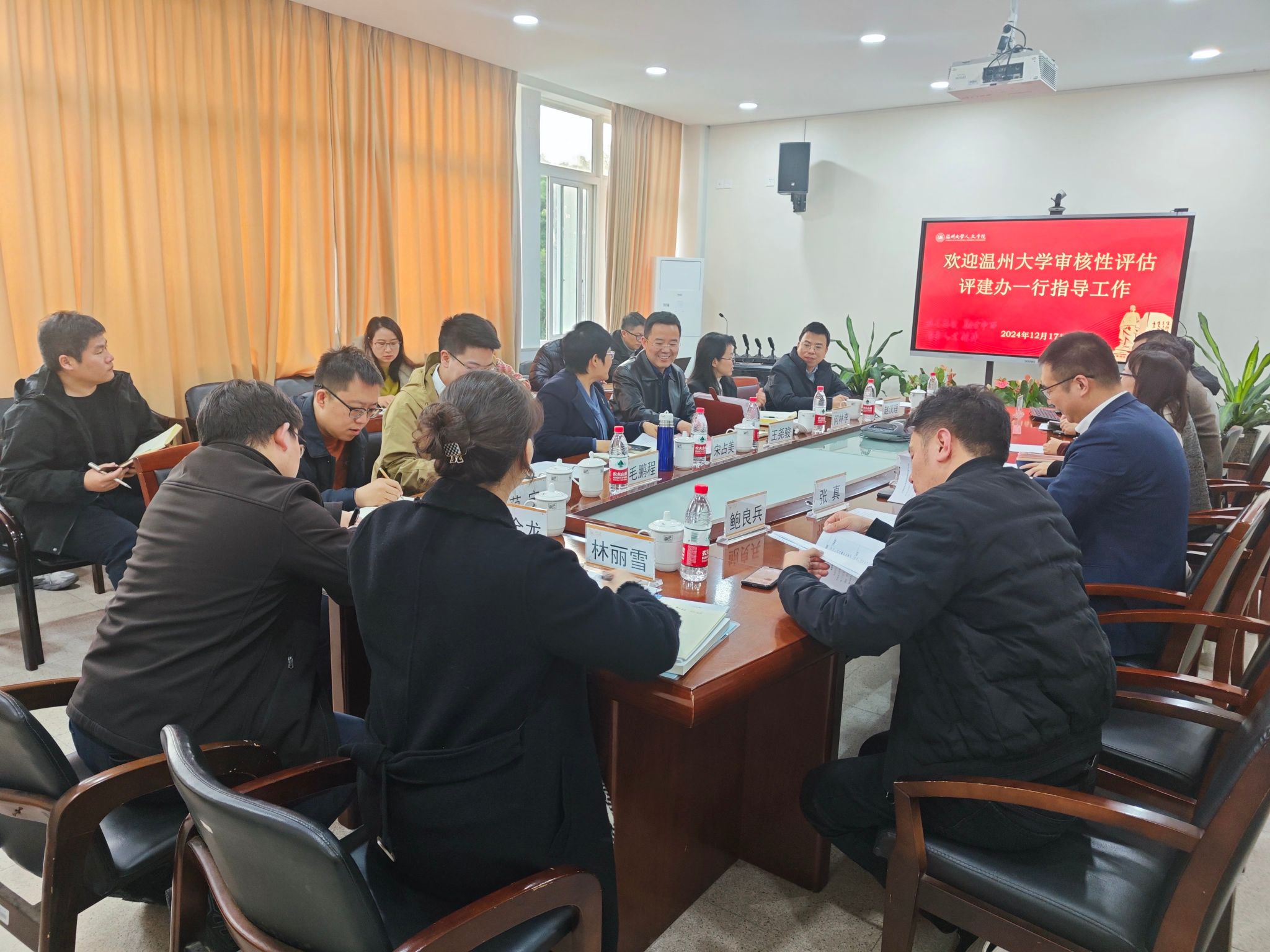 2024年12月17日下午,九色視頻 本科教育教学审核性评估评建办公室一行莅临九色視頻 ,对学院的本科教育教学审核评估工作进行指导与交流。此次活动旨在深入了解九色視頻 在审核性评估工作中的准备情况,共同探讨面临的问题与挑战,并提出建设性的意见和建议。