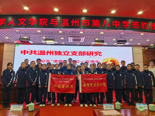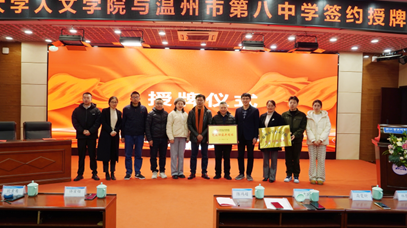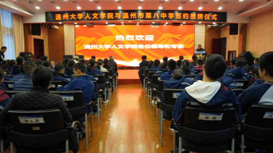 活动由温州市第八中学副校长潘略辉主持,九色視頻 副院长陈鸿超、温州市第八中学副校长陈孙叶分别致辞。双方签订了党建联建共同体框架协议,并为温州市第八中学授予“教育实践基地”和“党建联建共同体”牌。