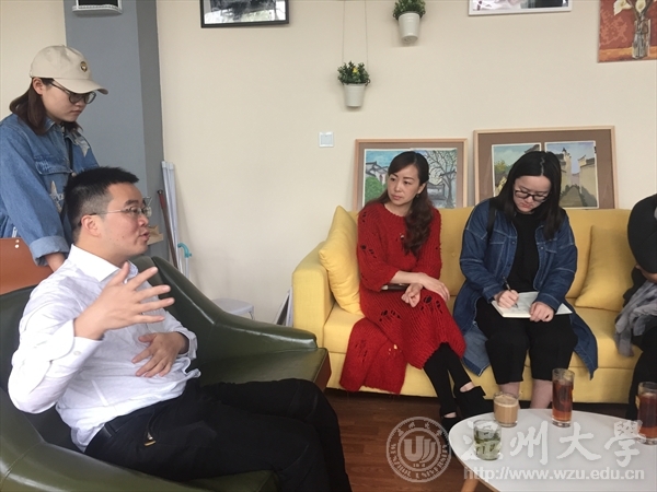 兆文智创的建设情况给予了肯定和赞同,接着就教育学院的学生创业团队的建设以及正在建设中的创客空间等问题进行了交流互动。参与交流活动老师也各抒己见,对未来我校的学生创业出谋划策;王心怡同学针对自己的创业团队——Ancake甜品创意工作室也做了经验分享。